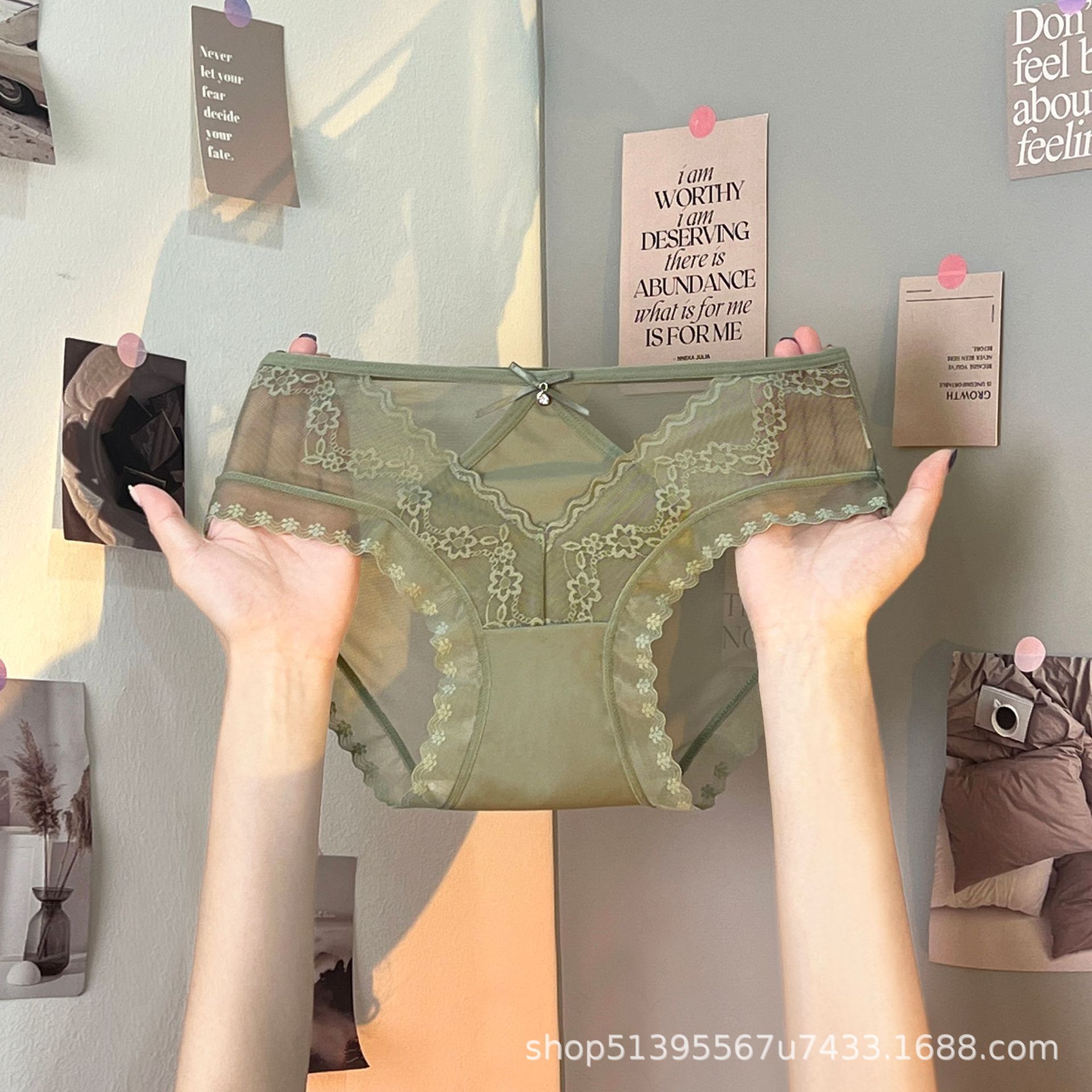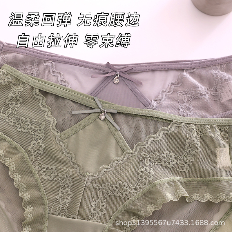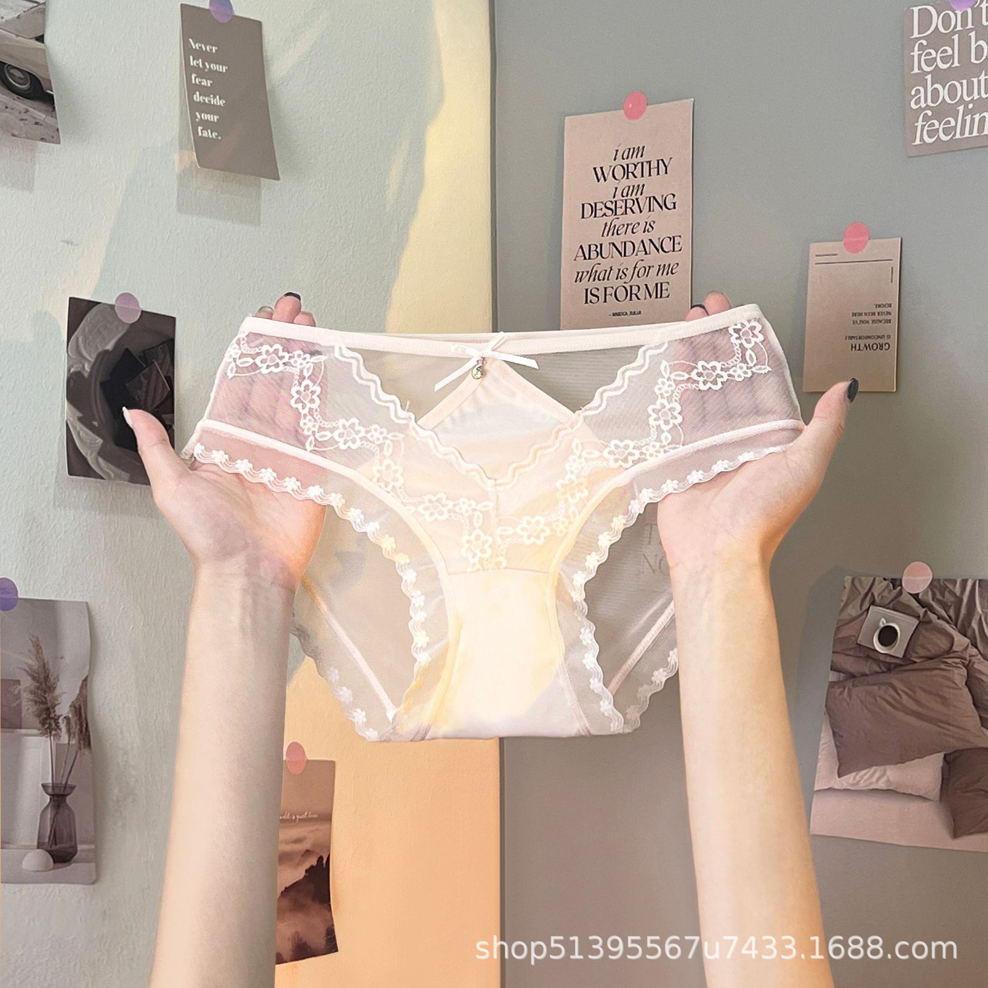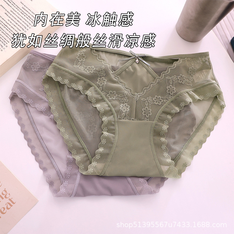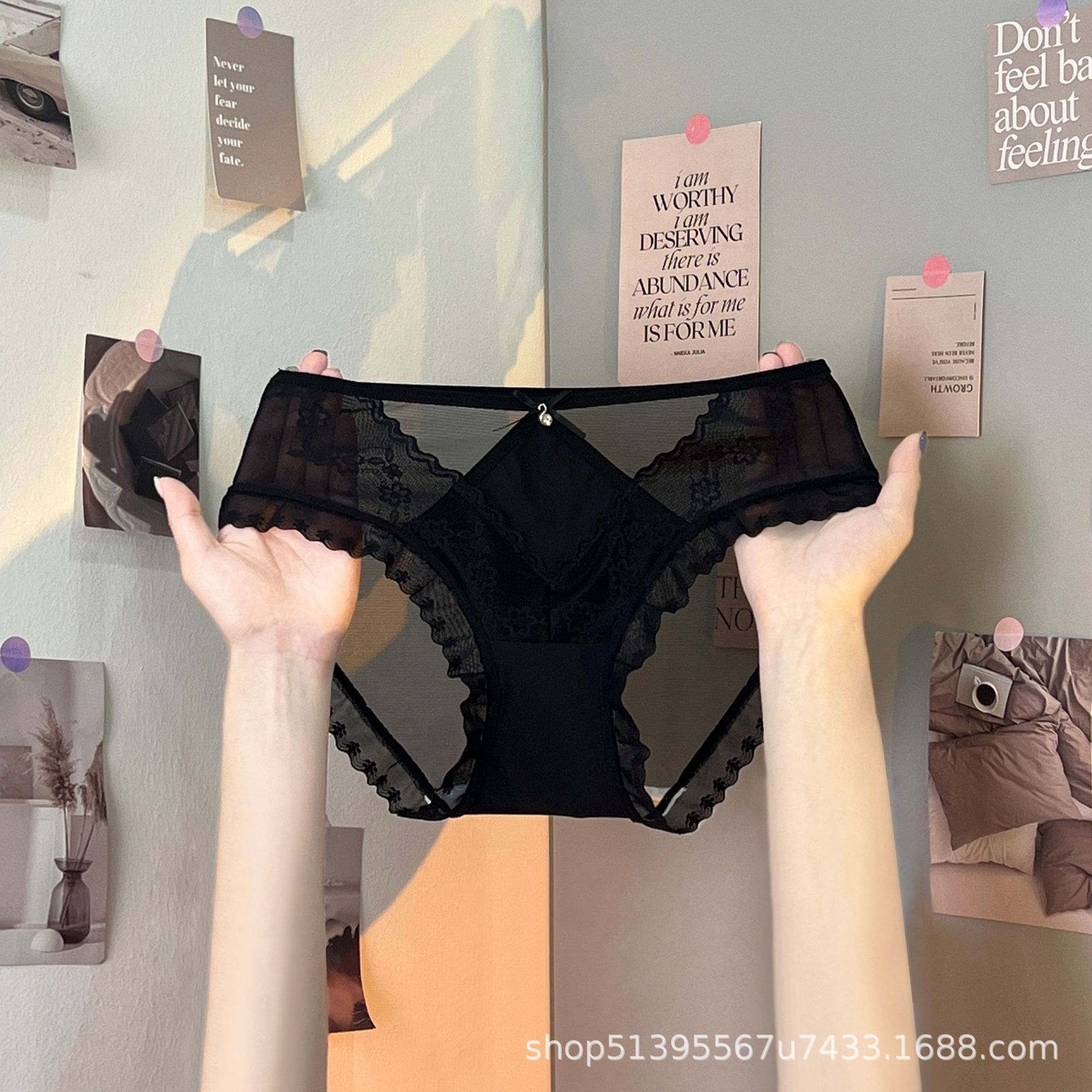 内裤女士新款夏季薄款纯欲性感镂空网纱蕾丝中腰透气三角裤头