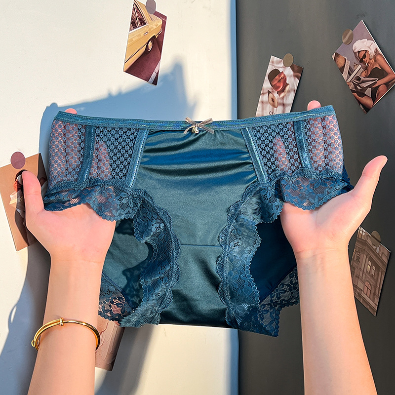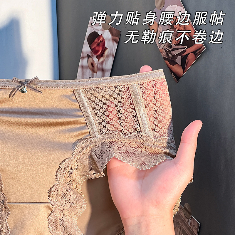 内裤女蕾丝性感夏季薄款舒适透气镂空轻奢缎面贵妇大码女士三角裤
