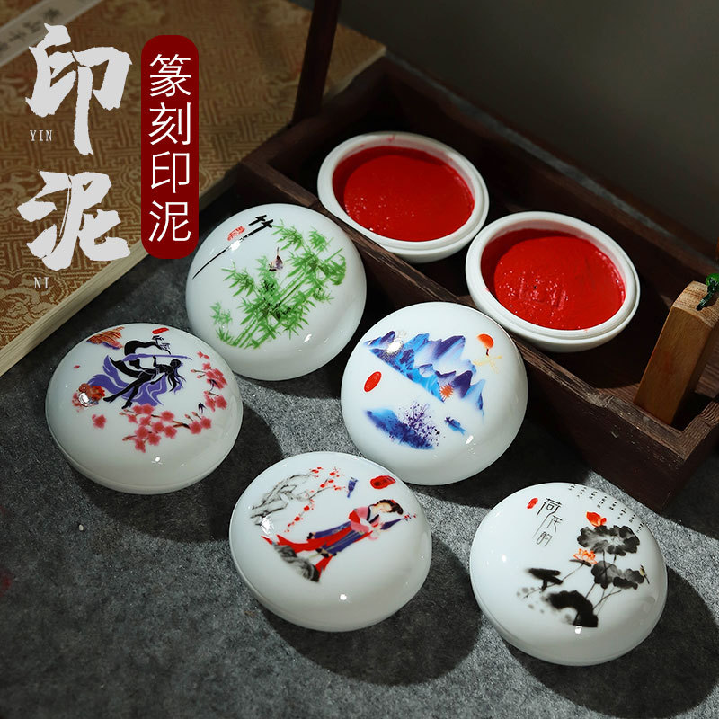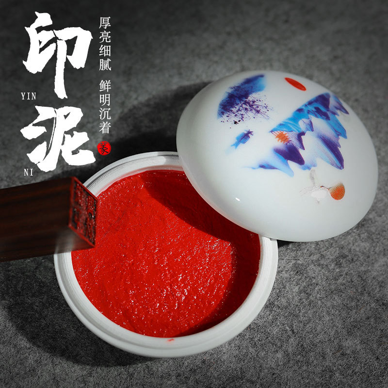 文房四宝国画书法印泥大红篆刻印章书画陶瓷印泥盒