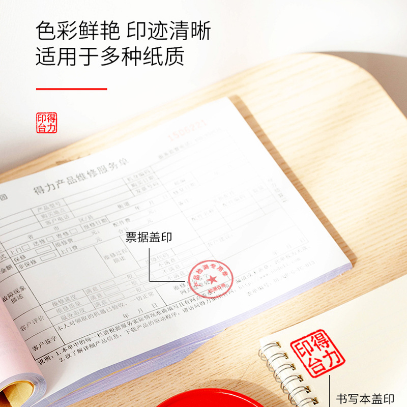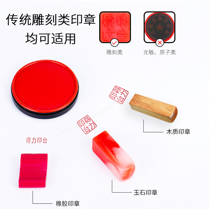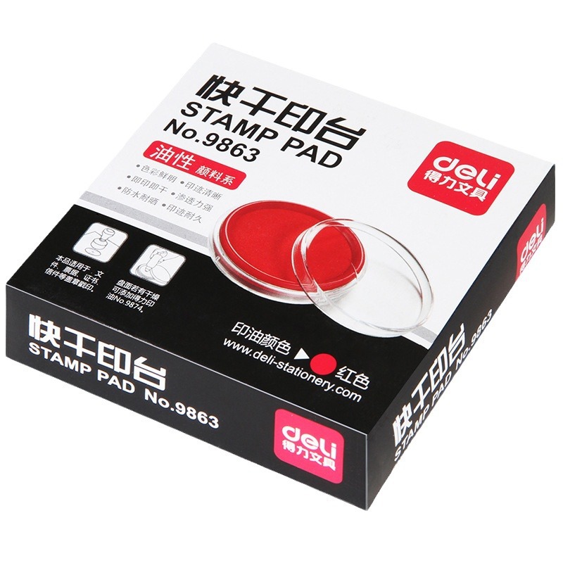 得力9863印台印泥快干印台财务盖章圆形红蓝色橡皮章印泥手指印