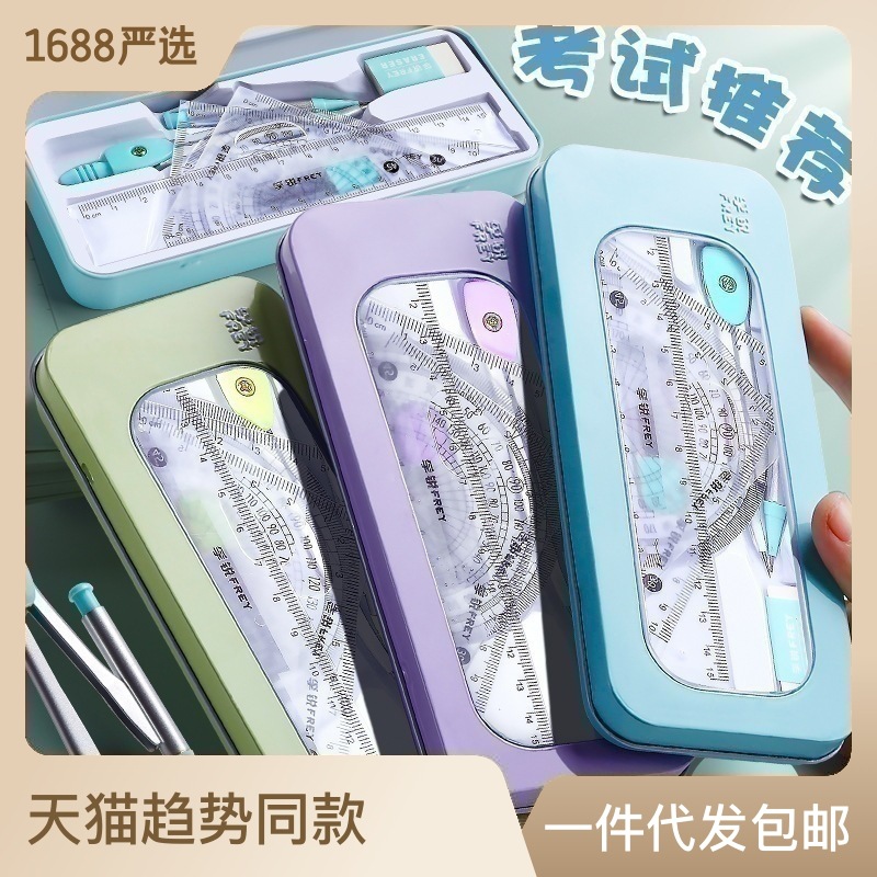 高颜值圆规尺子套装三角尺中考直尺多功能套尺小学生初中生专业绘