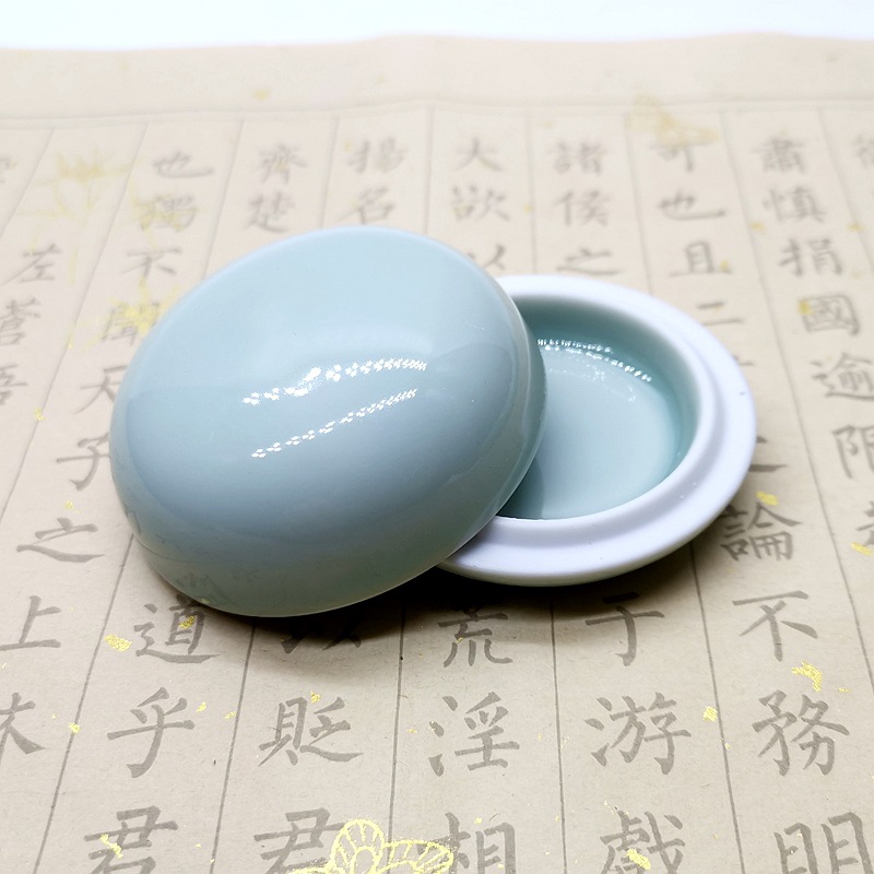 青瓷陶瓷印泥盒小号中号大号瓷缸书画国画篆刻印章朱砂印泥