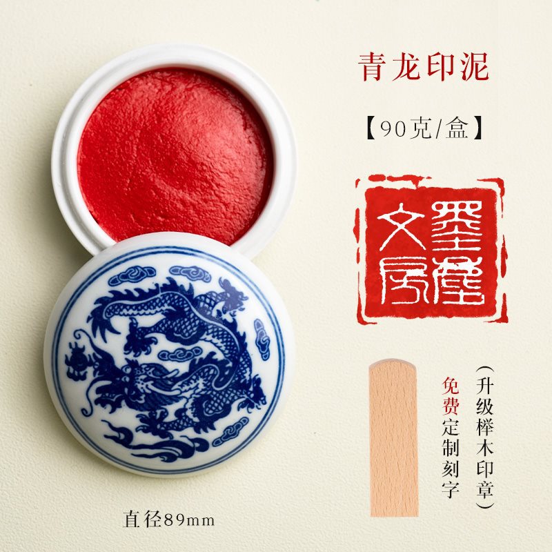 - 【200克】青龙印泥带缸+榉木印章(免费刻字)