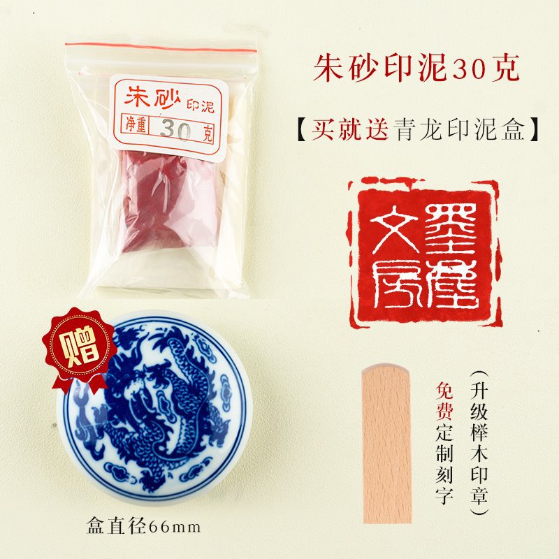 - 【30克】青龙印泥带缸+榉木印章(免费刻字)