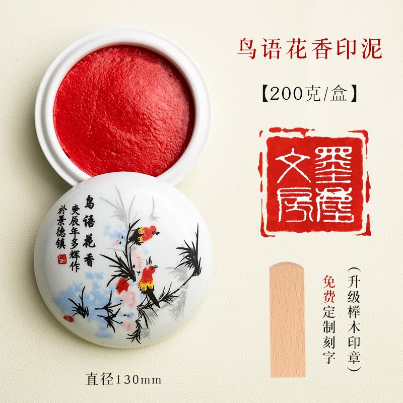 - 【200克】鸟语花香印泥带缸+榉木印章(免费刻字)