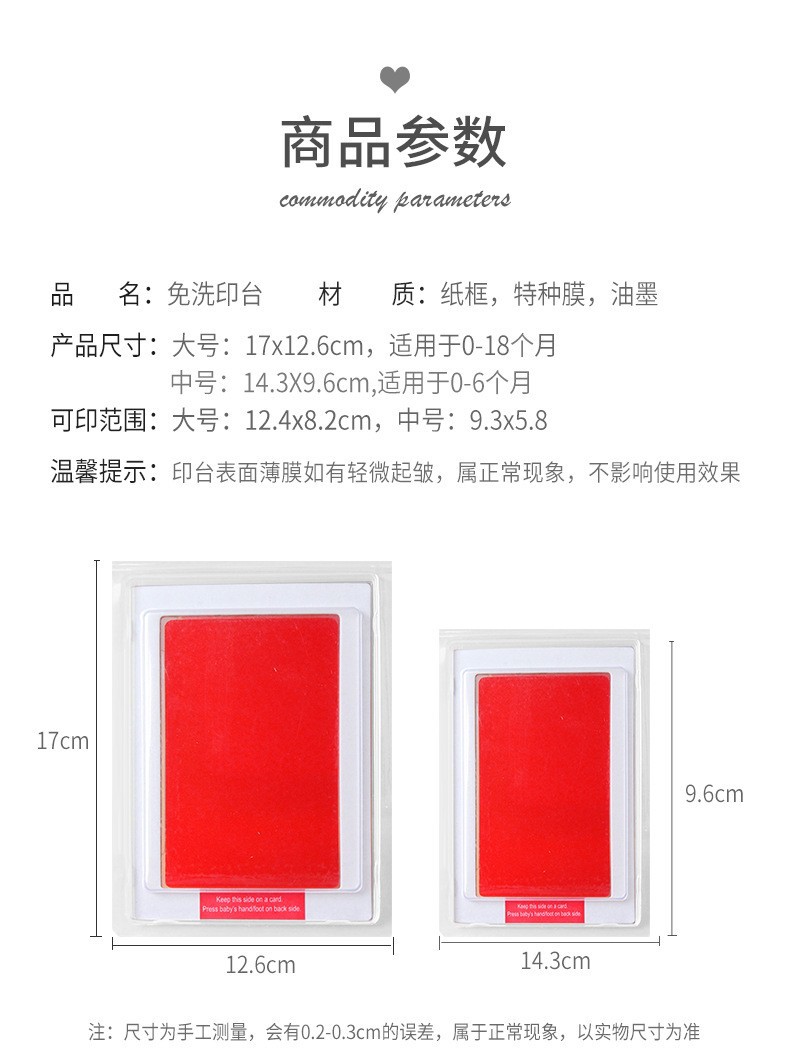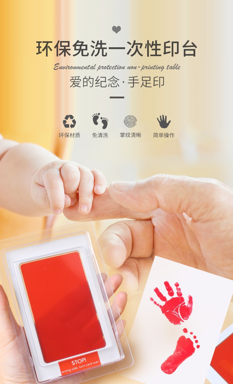 儿童免洗印台印泥足迹防伪婴儿宝宝手足印台 隔层不脏手印泥