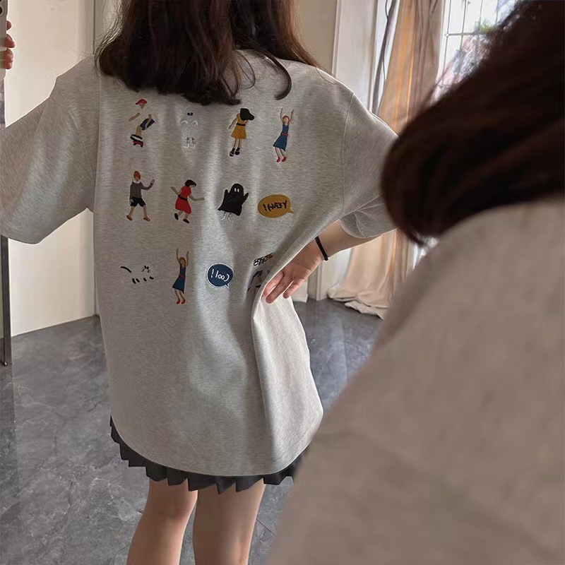 ADER潮牌薄款宽松小人刺绣T恤男女情侣多色同款休闲短袖半袖