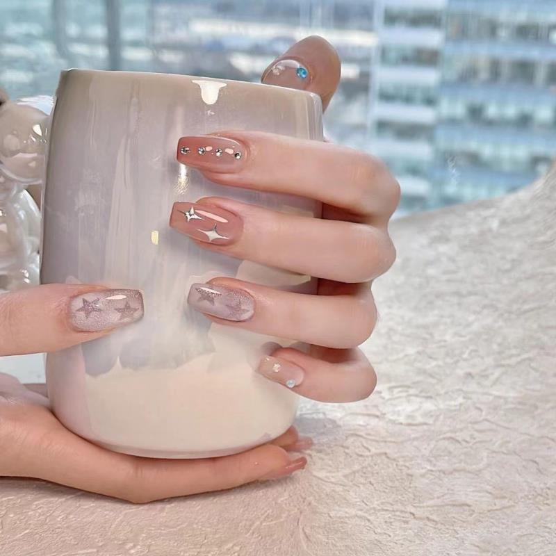 纯手工穿戴甲少女感点钻猫眼星星 ins风高级显白美甲片小红书爆款