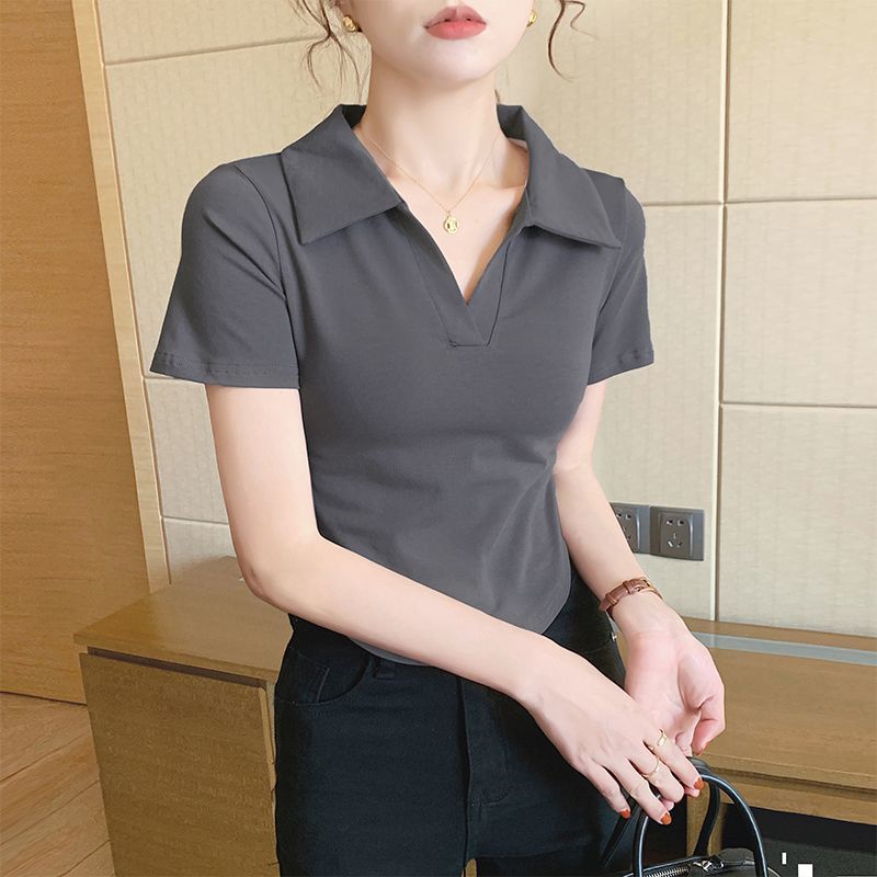 螺纹棉短袖t恤女2025年新款夏季纯色内搭打底衫微胖正肩显瘦V领上