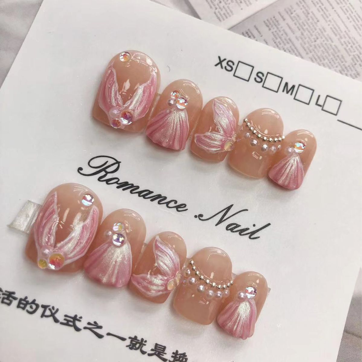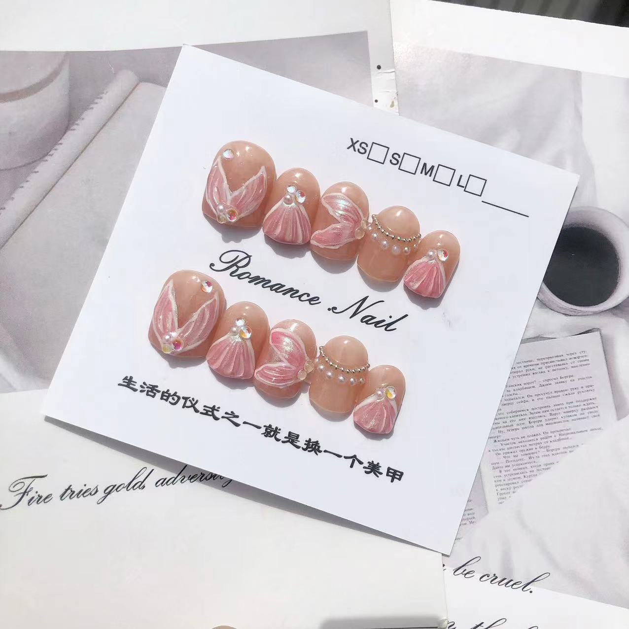 纯手工穿戴甲泡泡美人鱼贝壳轻奢风仙女光疗美甲片可拆卸重复使用