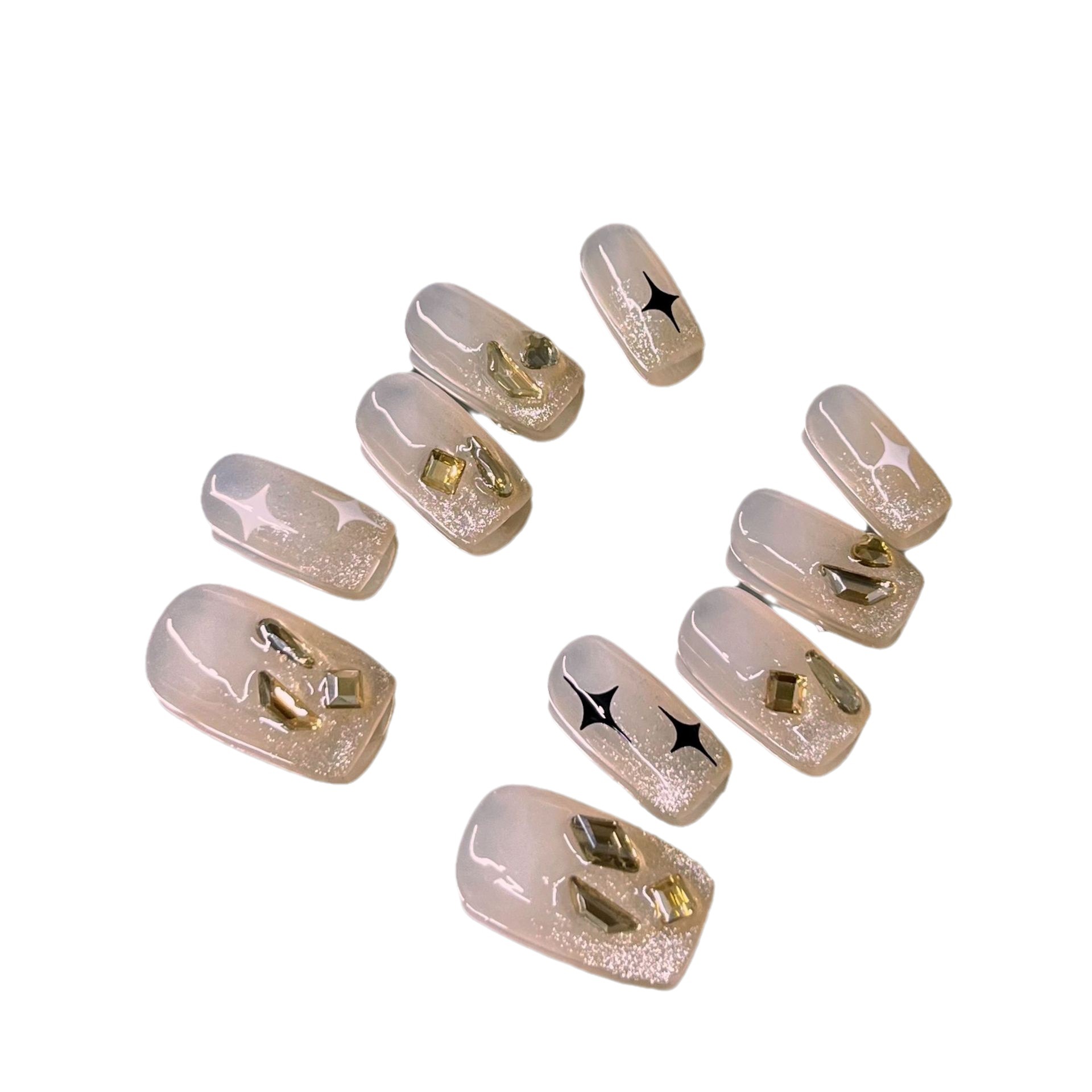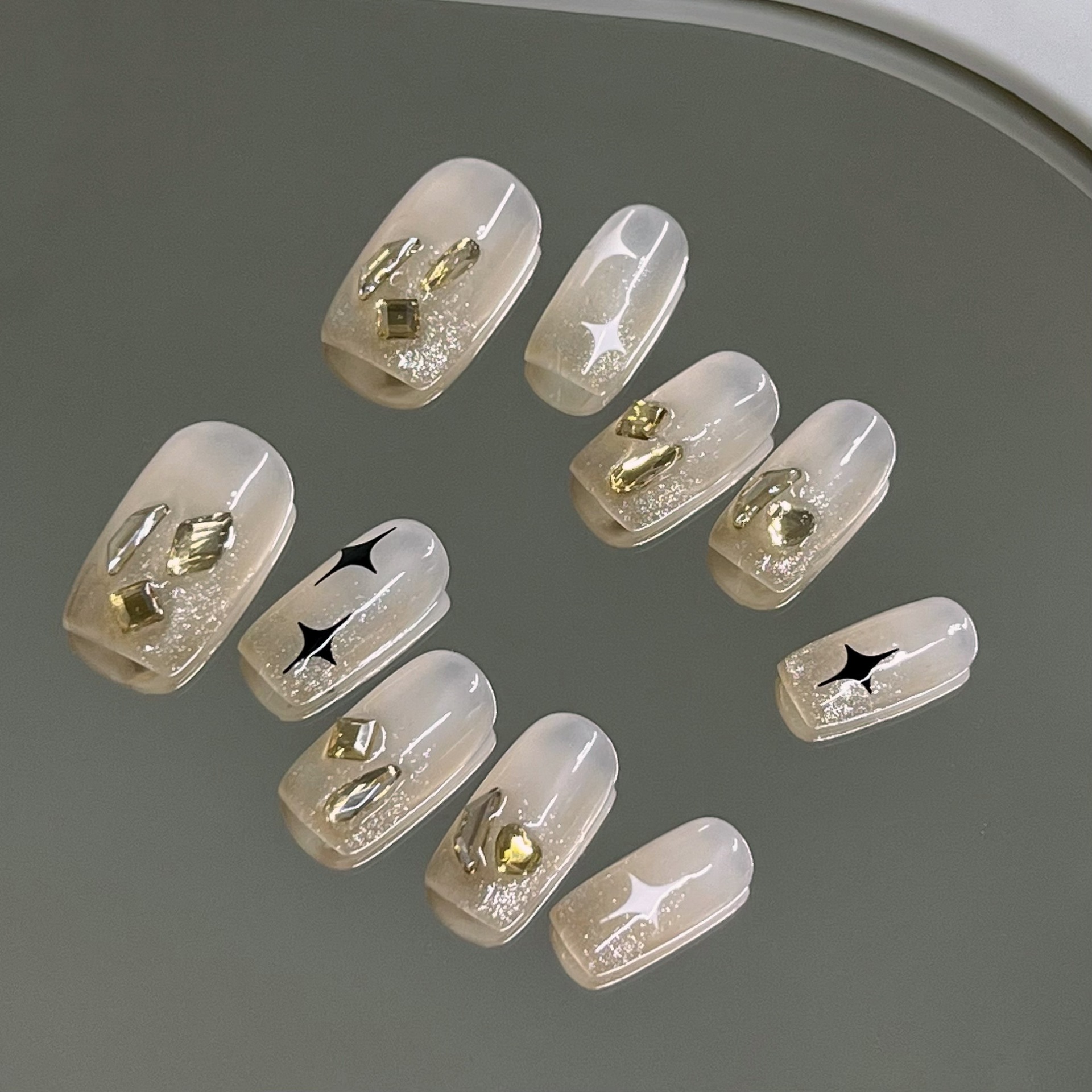 纯手工穿戴甲满天星美甲片显白高级裸色清透感春夏新款光疗甲批发