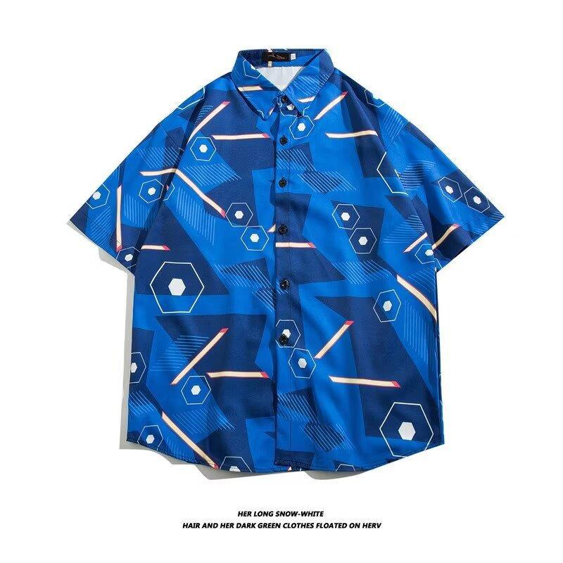 复古美式vintage日系古巴领花衬衫男生短袖夏季港风痞帅宽松衬衣