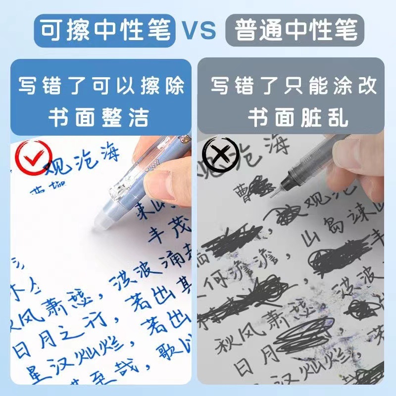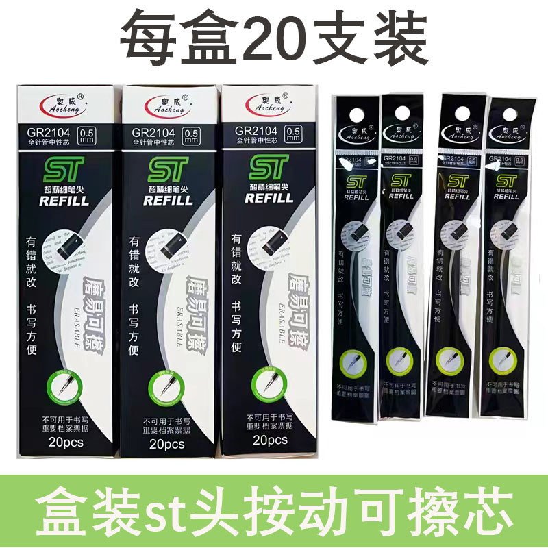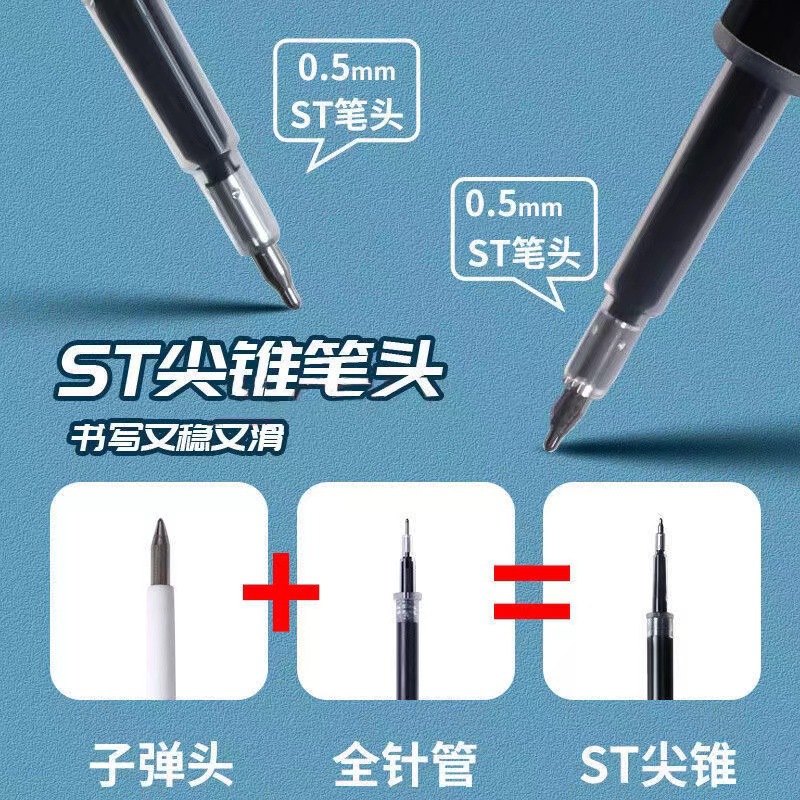 葫芦头st头按动可擦笔芯黑色中性笔可擦笔芯刷题笔头学生考试专用
