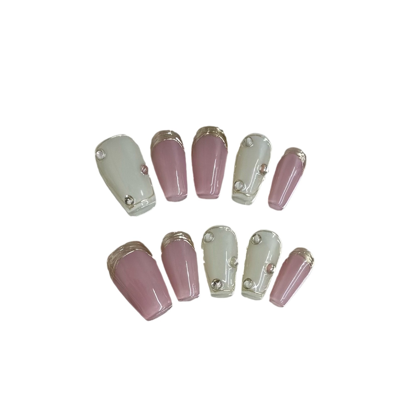 穿戴甲奶油布丁裸色金属感镜面线条法式美甲 ins温柔显白气质美甲