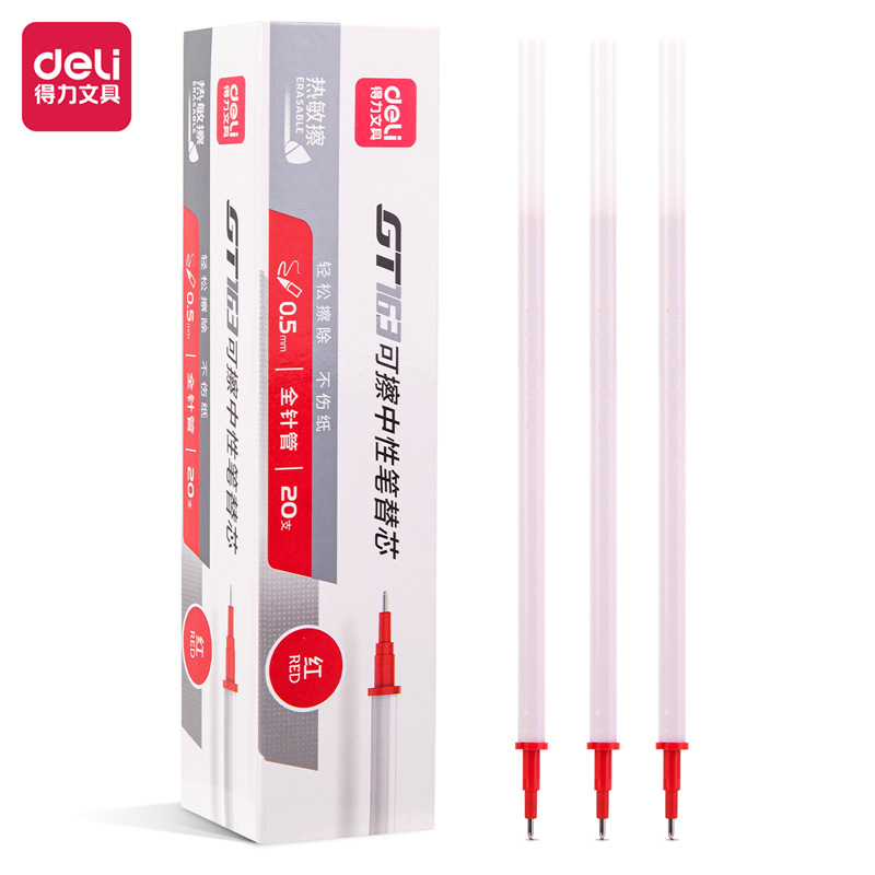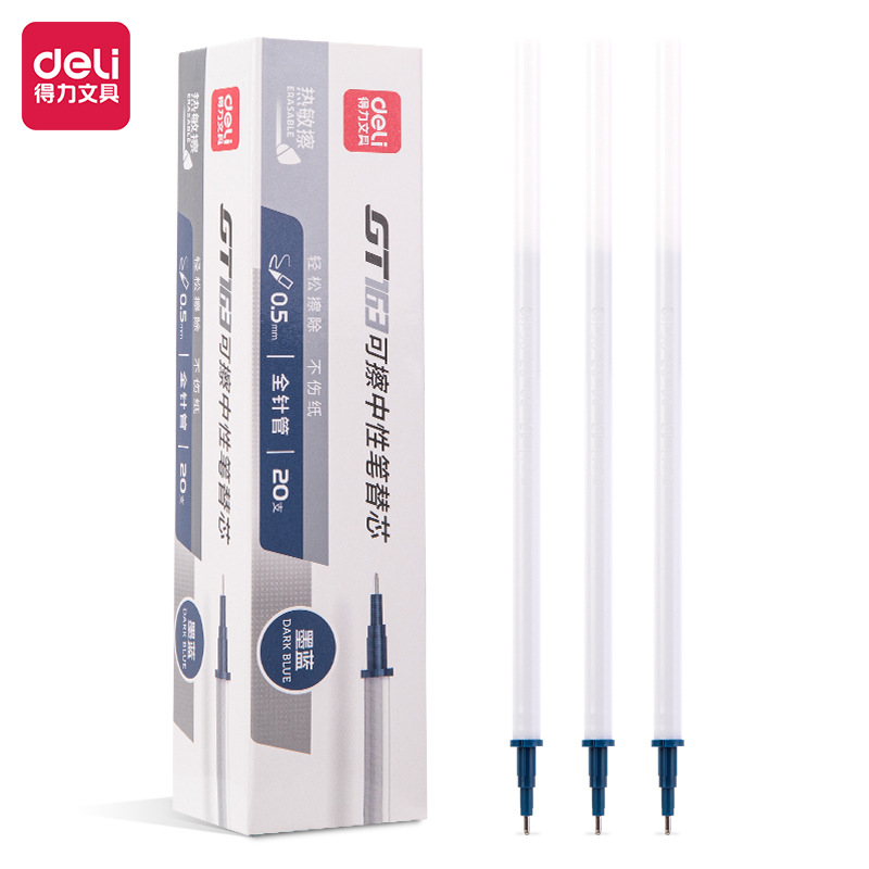 得力晶蓝/黑色热敏擦中性笔替芯0.5mm全针管拔帽款可擦笔芯GT163