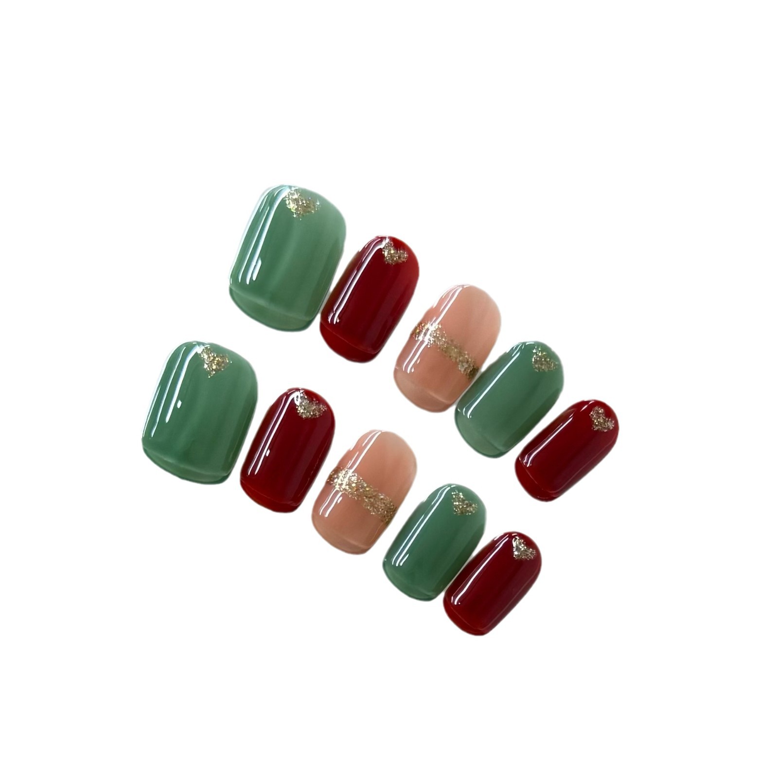 纯手工穿戴甲圣诞预告片红绿配色秋冬氛围感ins风高级感显白美甲