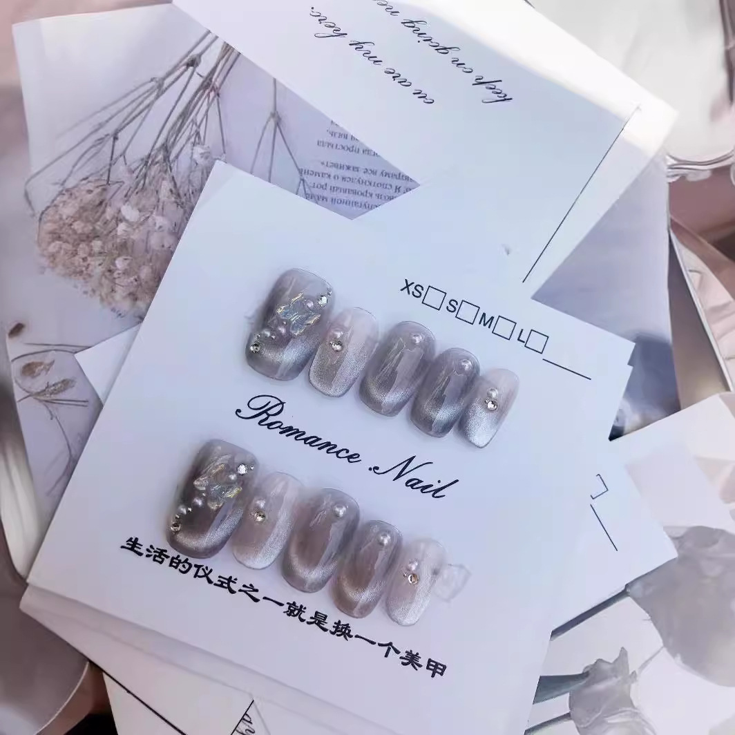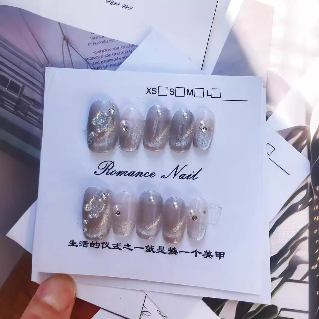 纯手工穿戴甲猫眼蝴蝶高级感美甲可拆卸重复使用学生甲片
