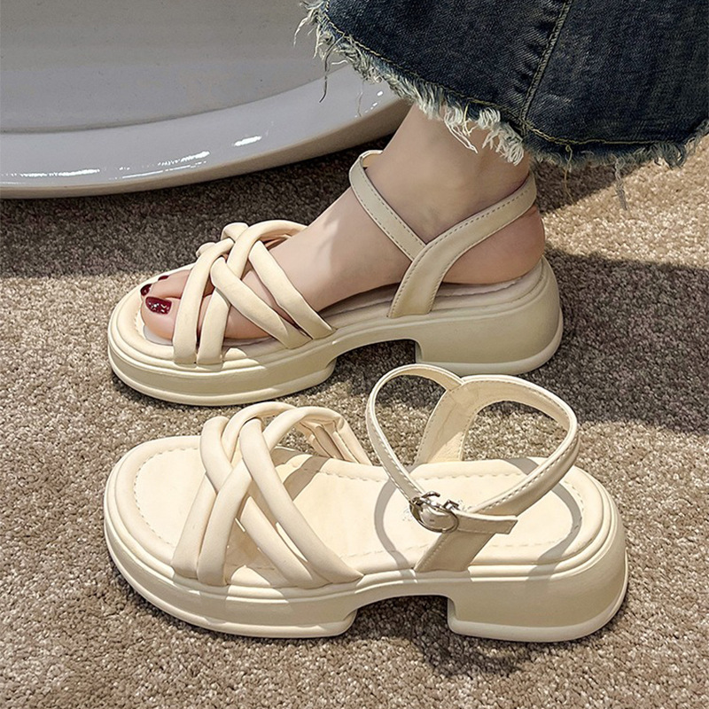 凉鞋女仙女风批发新款夏季百搭粗跟学生时尚网红绑带仙女风罗马鞋