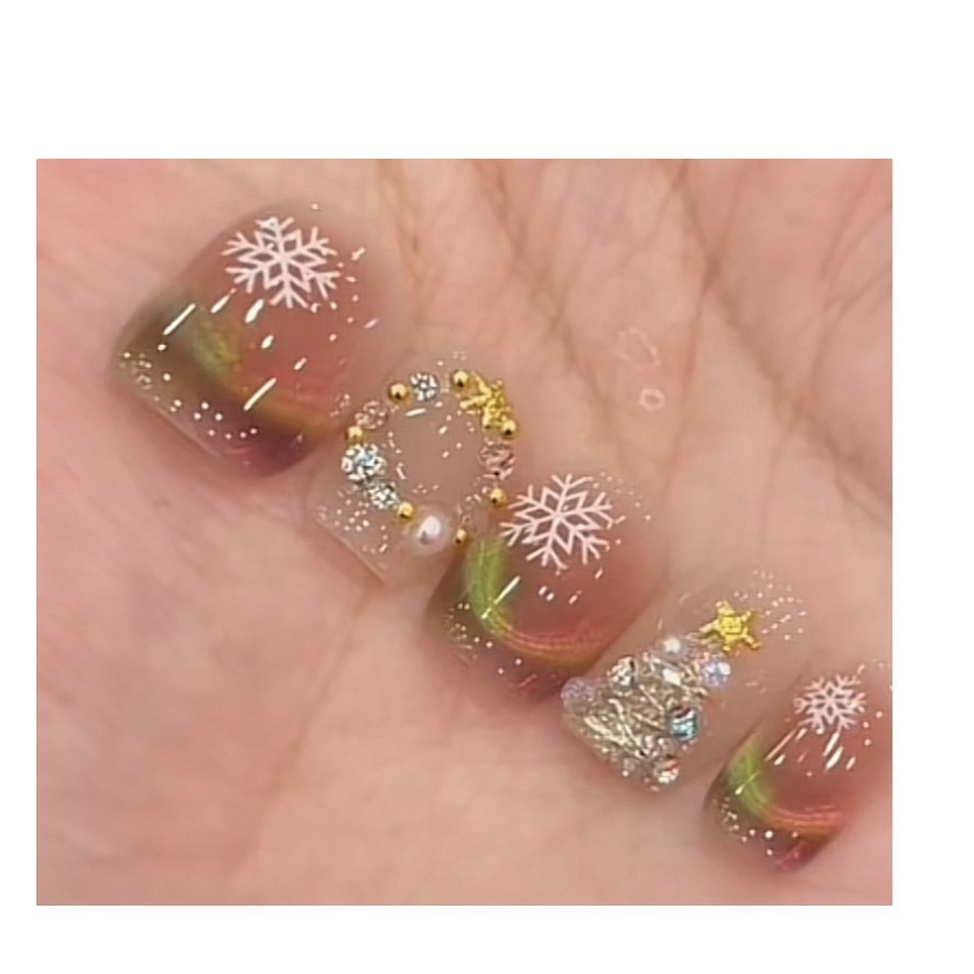 小红书同款圣诞美甲网红纯手工猫眼穿戴甲短款美甲贴片成品G405