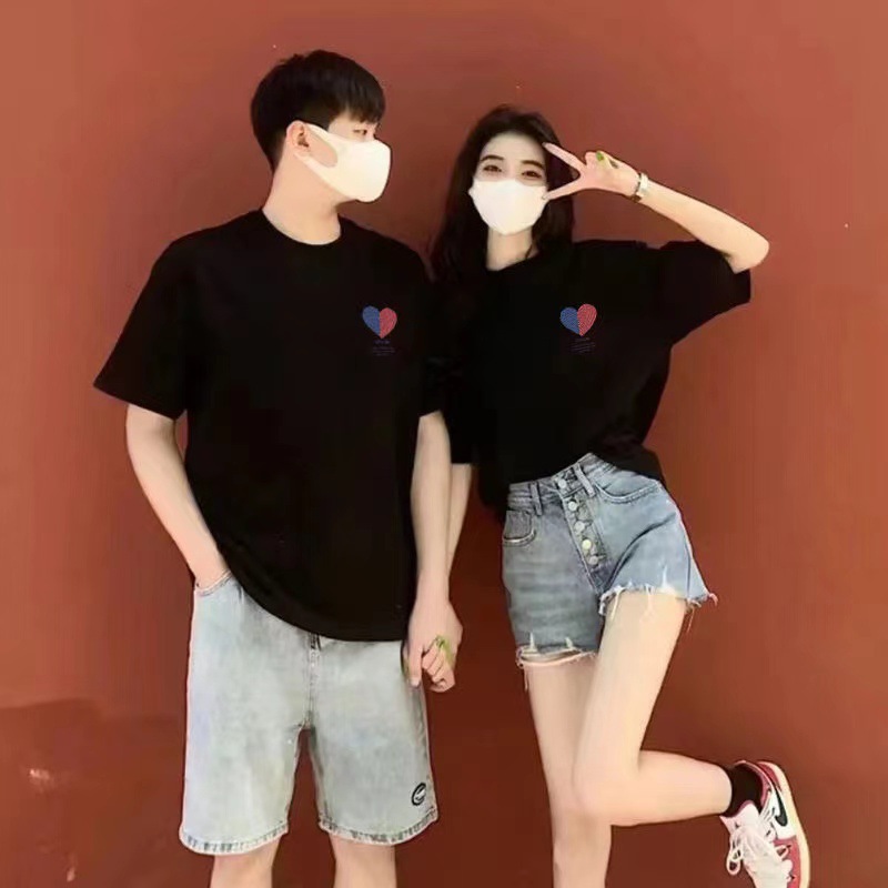 新款指纹爱心情侣短袖T恤女潮牌超火roora高级设计感小众夏装
