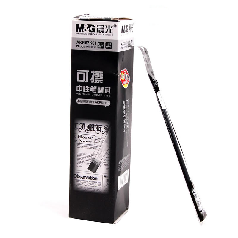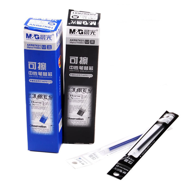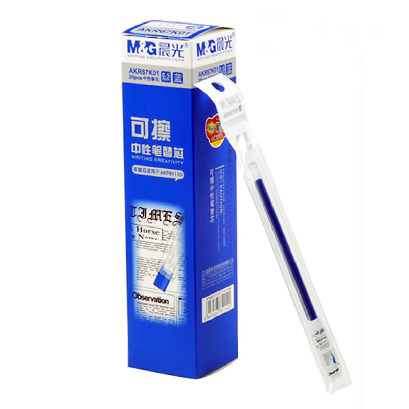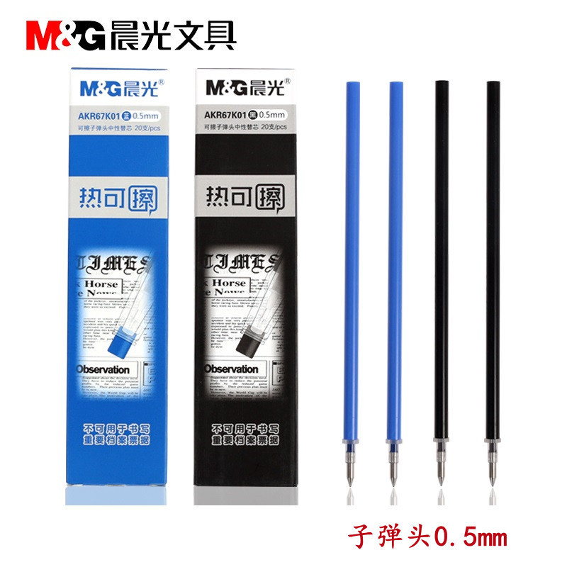 晨光热可擦中性笔替芯子弹头黑色晶蓝AKR67K01学生用可擦笔芯0.5