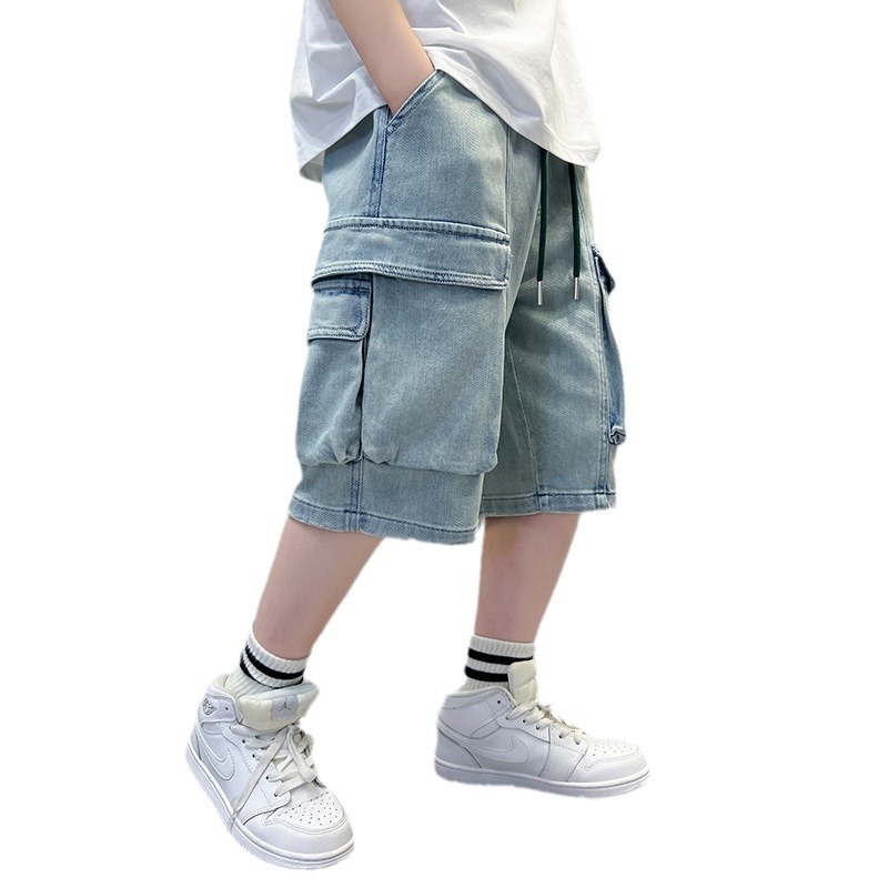 夏季中大男童牛仔工装短裤新款童装儿童男孩大口袋休闲裤潮酷