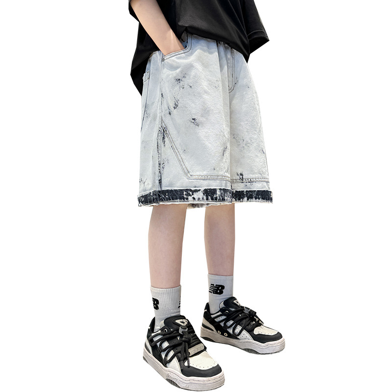 夏季中大男童牛仔短裤新款童装儿童男孩做旧个性潮酷短裤撞色