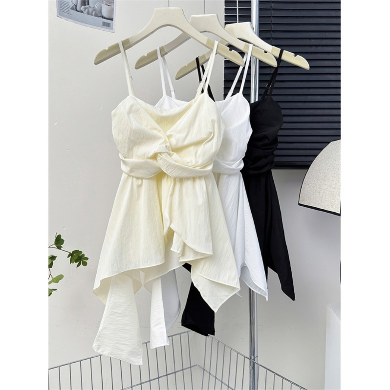 法式不规则荷叶边抹胸吊带背心女夏外穿海边穿搭辣妹褶皱无袖上衣