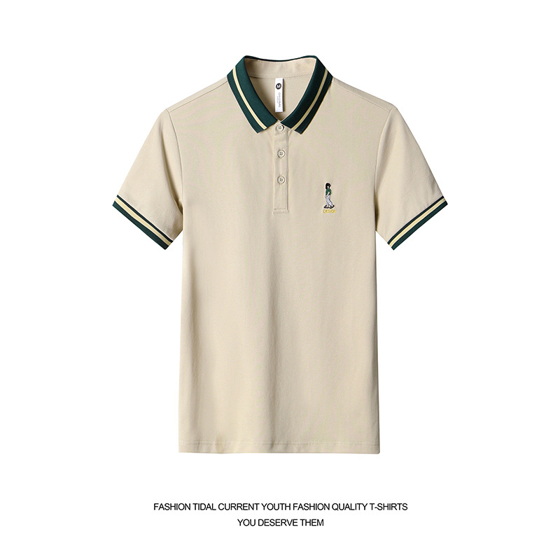 直播爆款轻奢商务珠地撞色小人刺绣大码夏季短袖T恤POLO衫