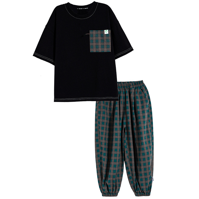 夏装大男童短袖长裤套装童装儿童男孩t恤薄两件套潮酷个性童套装