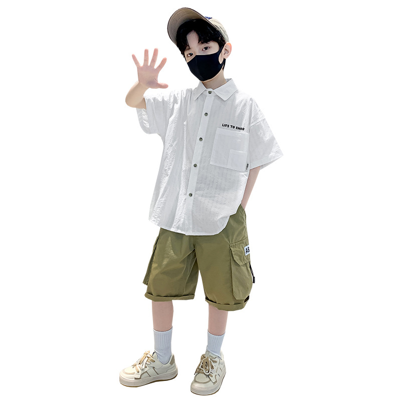跨境男童短袖衬衫短裤套装夏季童装儿童t恤中裤两件套童套装