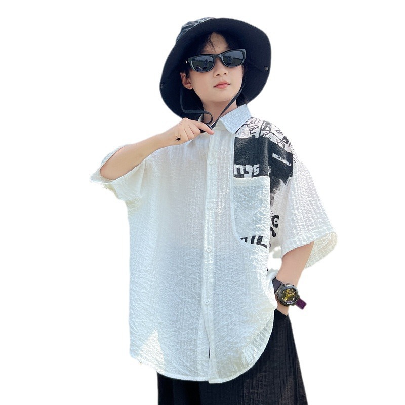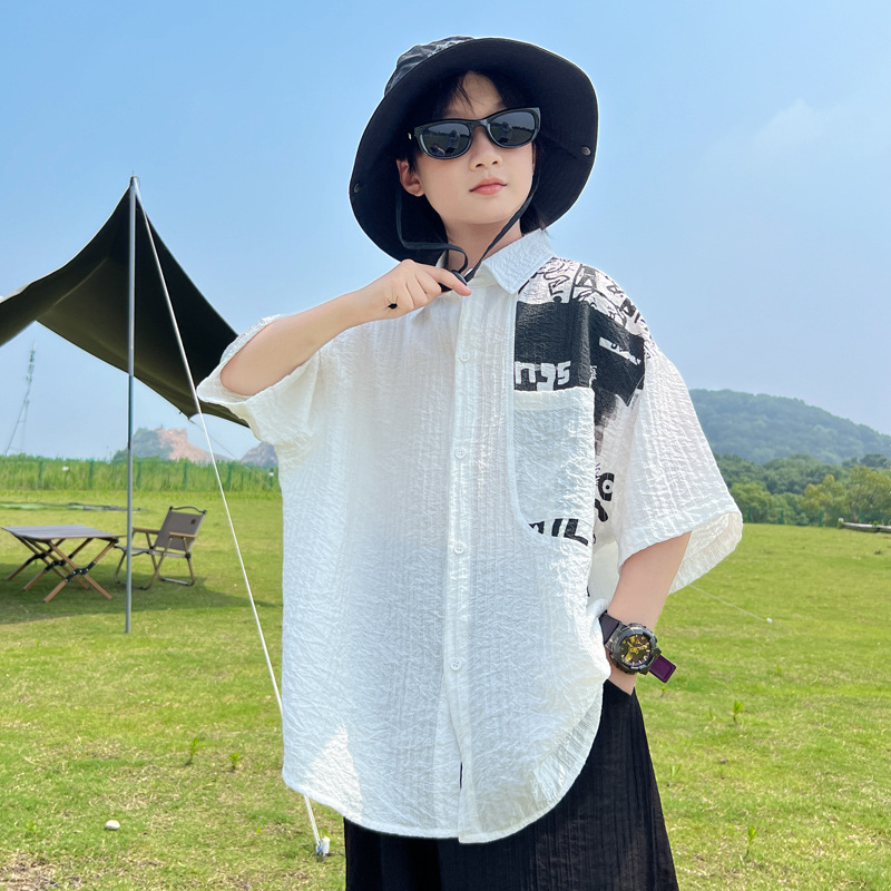 夏季男童短袖衬衫中大童装儿童新男孩薄款个性衬衣翻领上衣潮痞帅