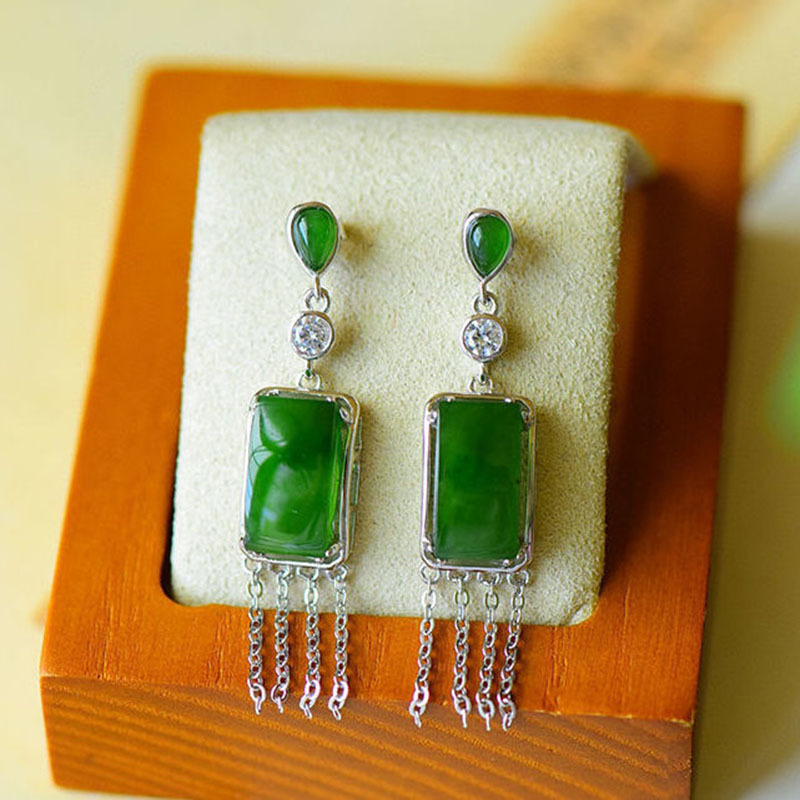 925银镀金方形碧玉髓古风民族风宫廷风国潮气质复古女士百搭耳钉