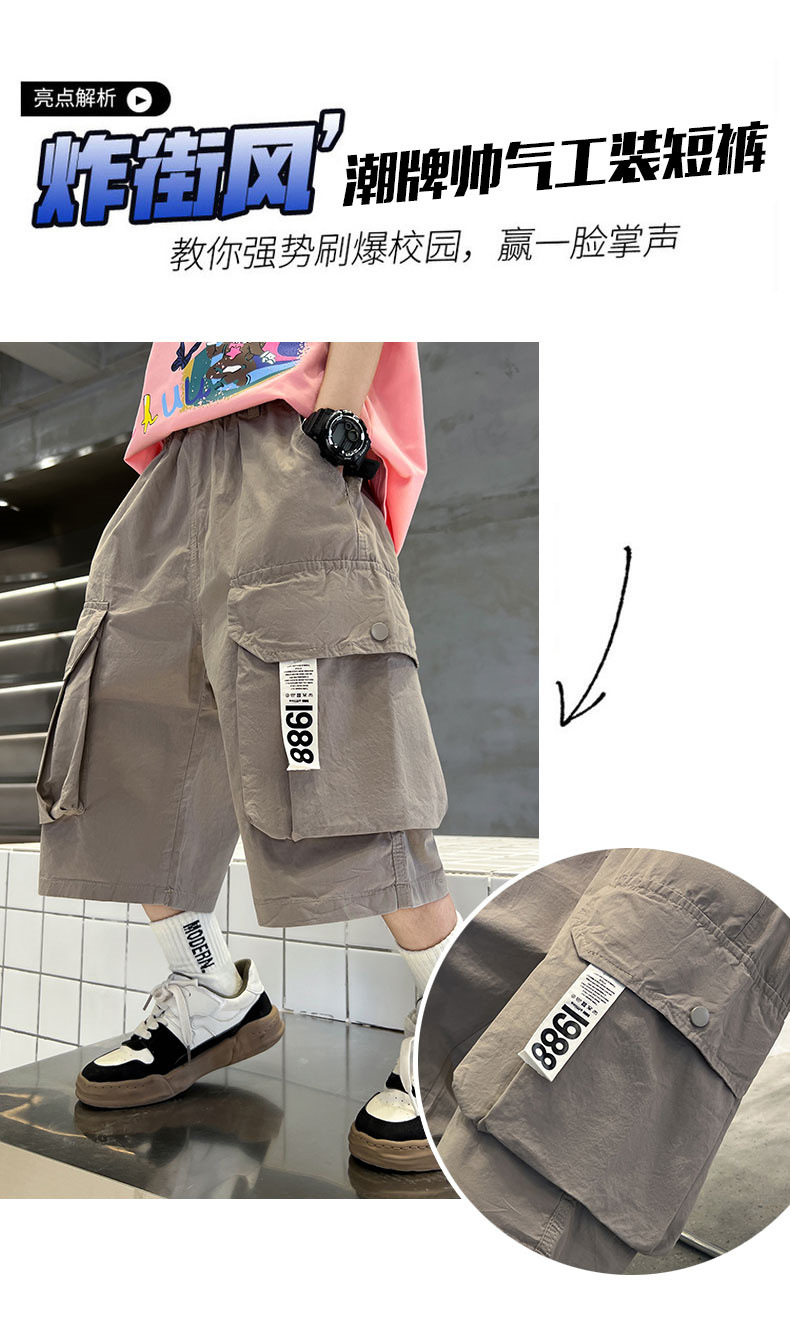 夏季中大男童工装短裤新款童装儿童男孩大口袋五分休闲裤痞帅