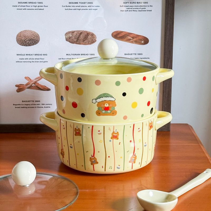 可爱卡通波点泡面碗双耳带盖学生宿舍方便面碗陶瓷螺蛳粉碗釉下彩