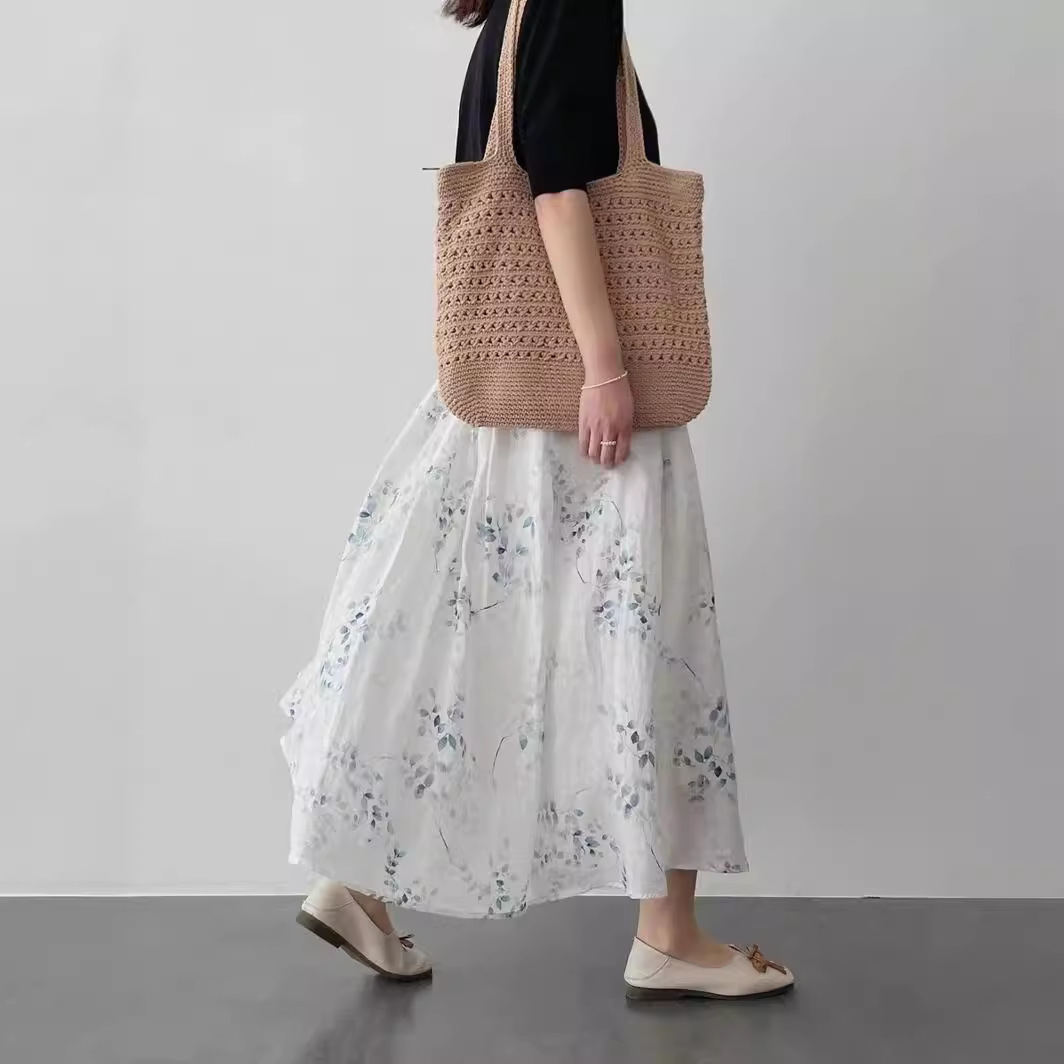 法式复古白色碎花半身裙女小个子夏高腰a字中长款半裙夏季小清新