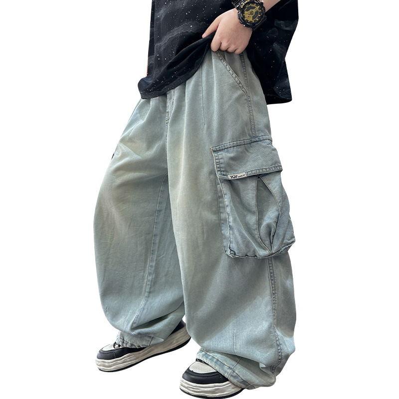 夏季中大男童工装牛仔裤新款童装儿童男孩浅色轻薄柔软宽松裤潮流