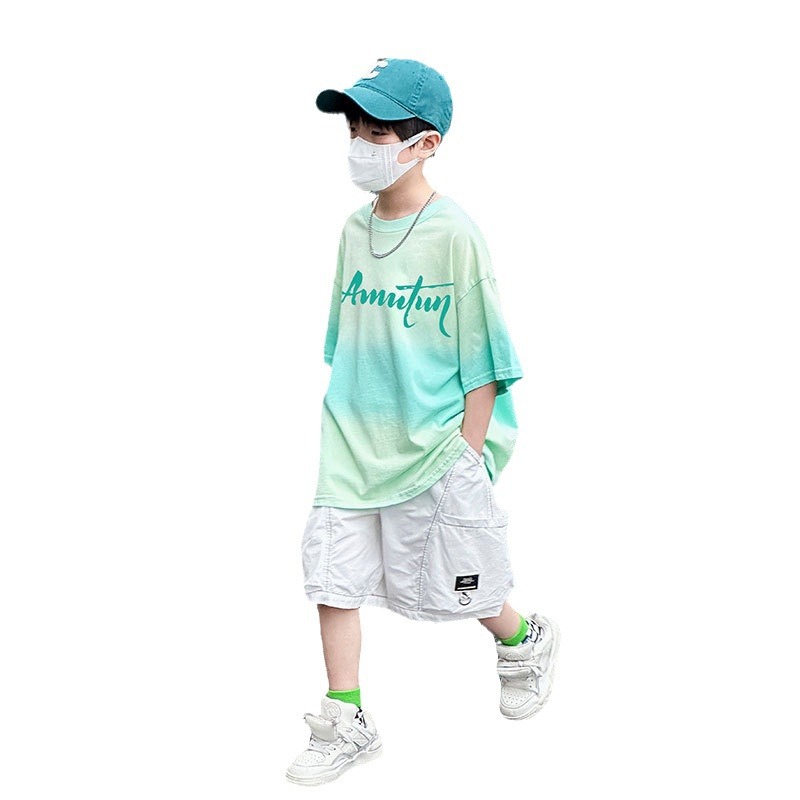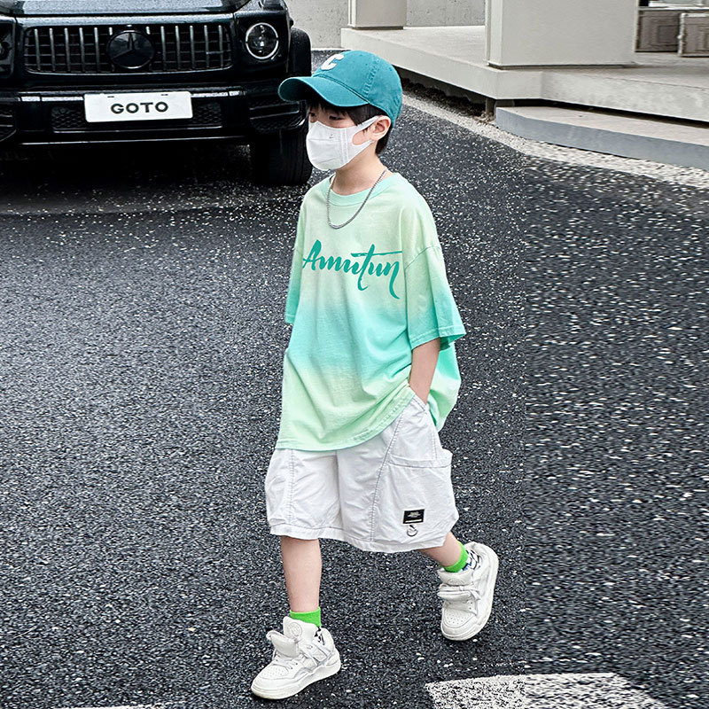 夏季中大男童短袖T恤新款童装儿童男孩字母t个性潮酷痞帅扎染