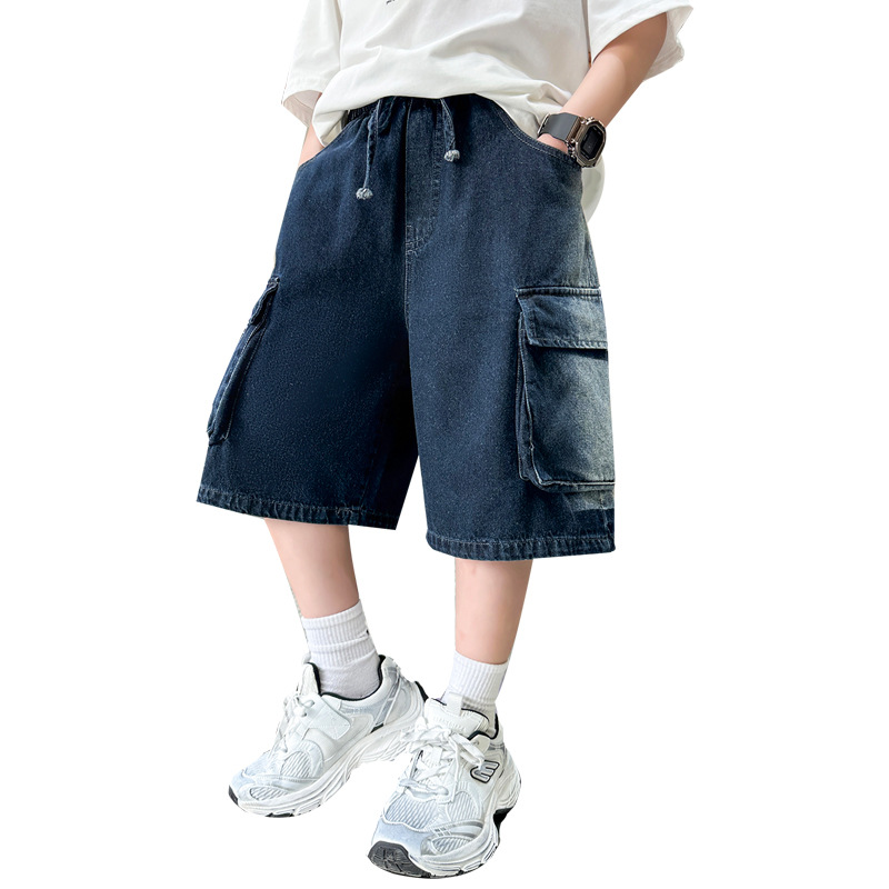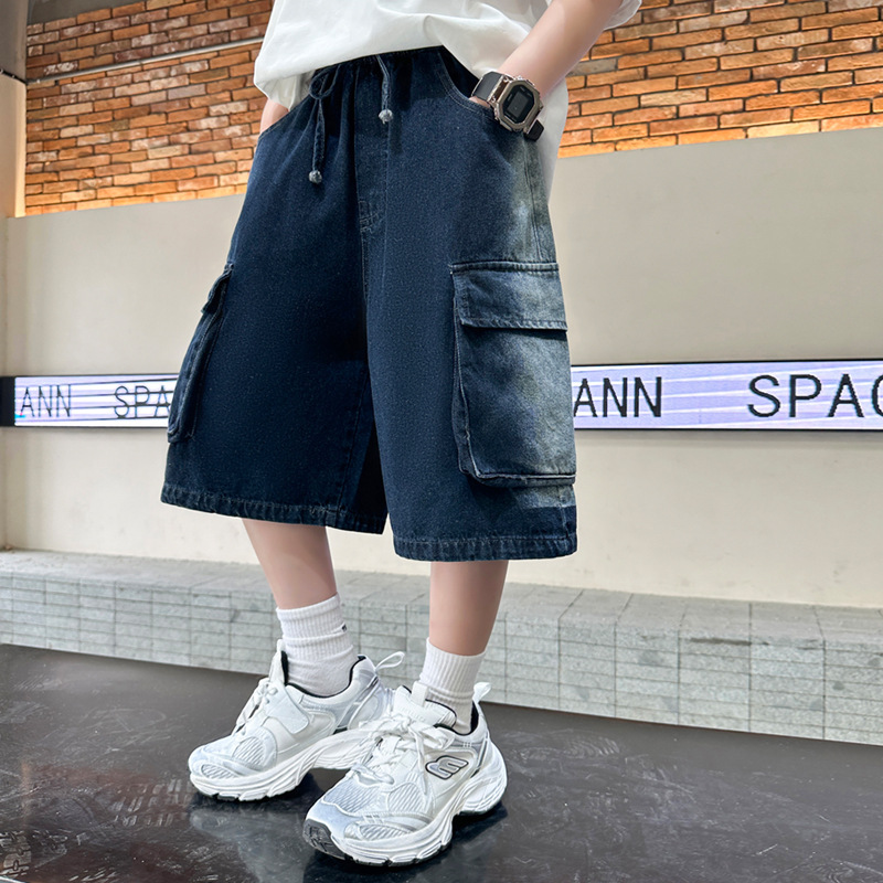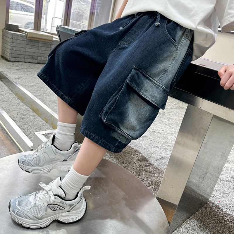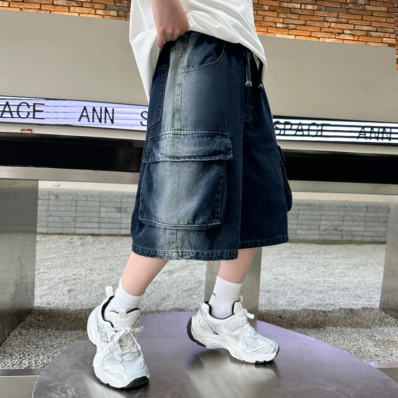 夏季中大男童牛仔短裤新款童装儿童男孩浅色中裤个性宽松百搭潮流
