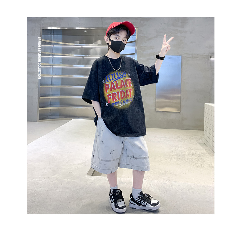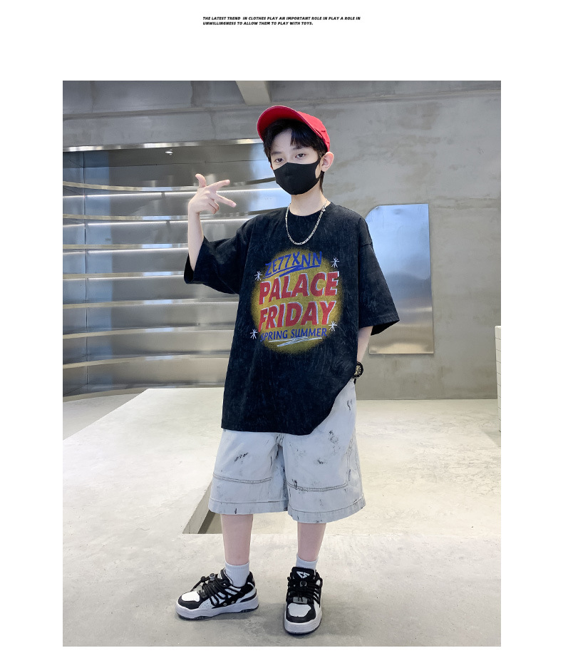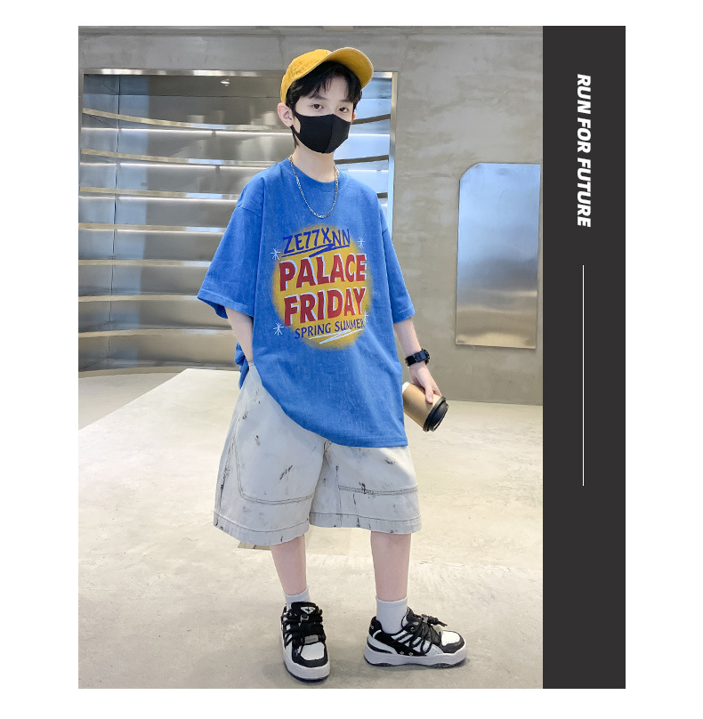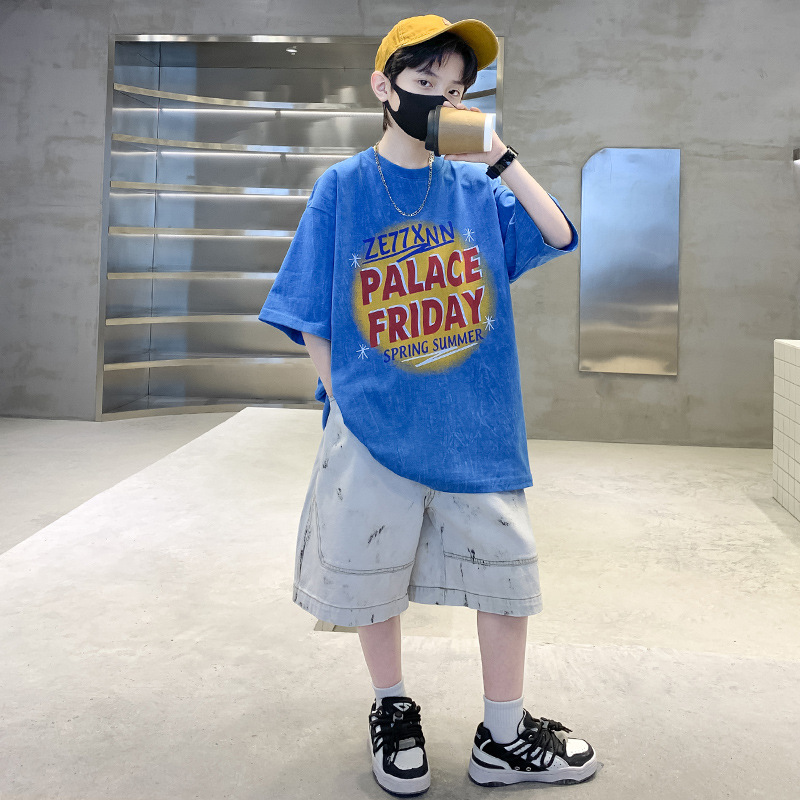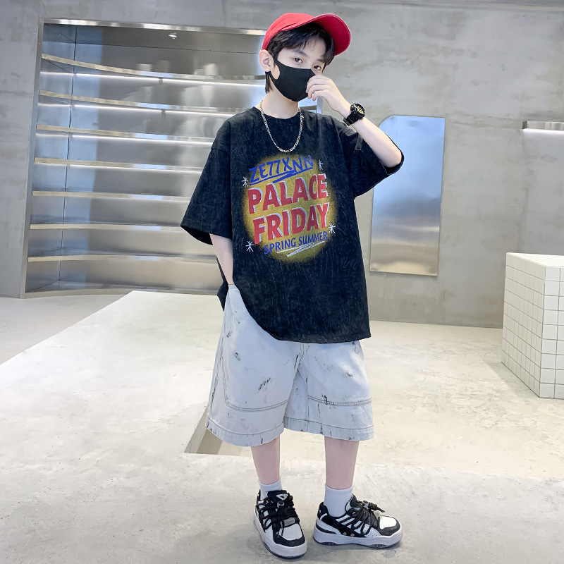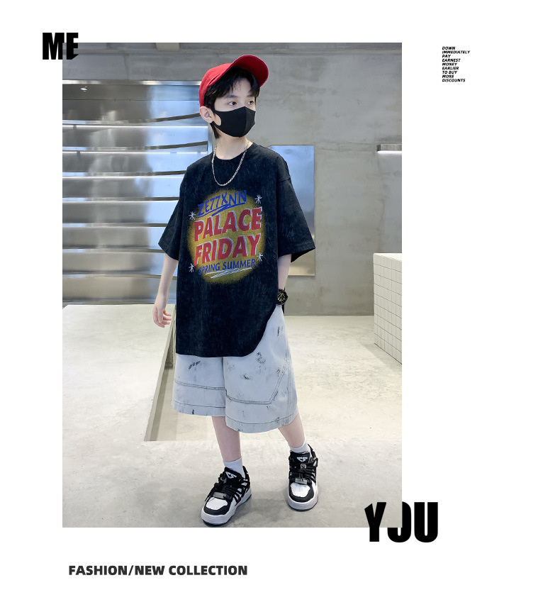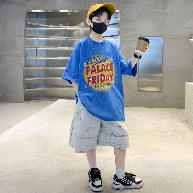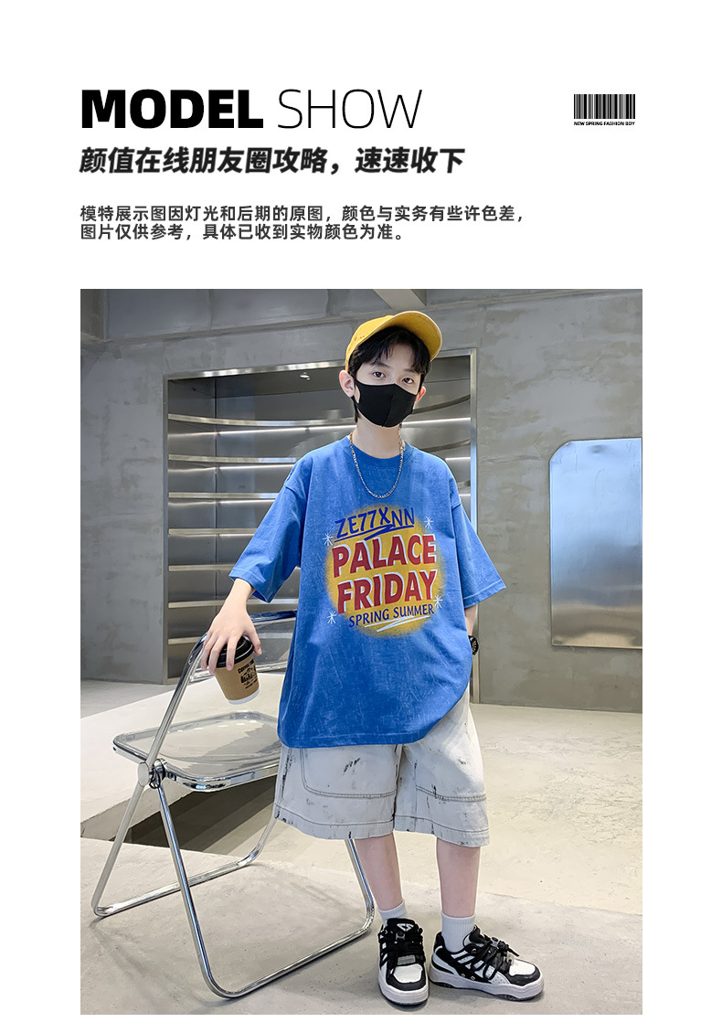 夏季中大男童短袖套装新款童装儿童男孩短裤两件套个性宽松潮痞帅