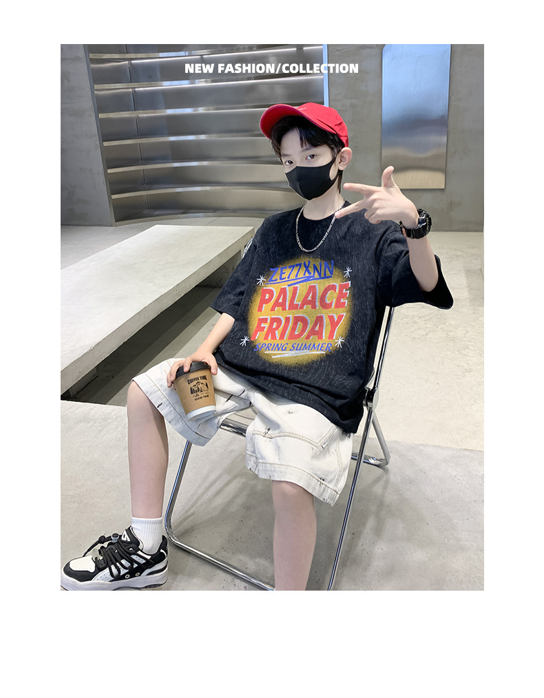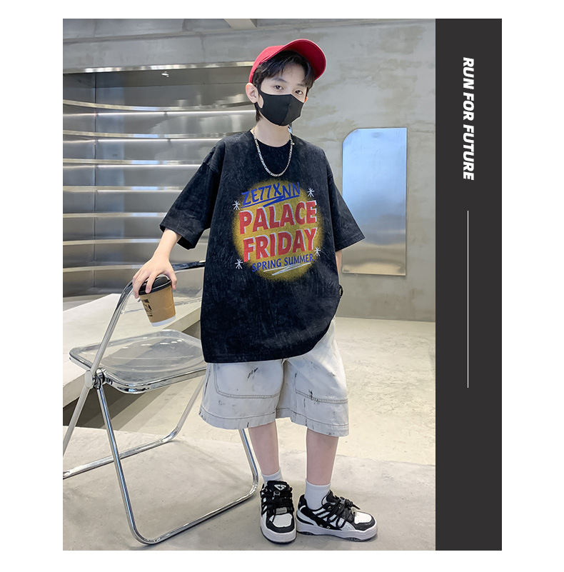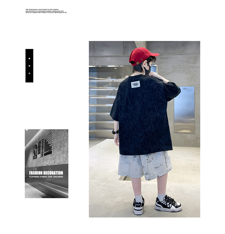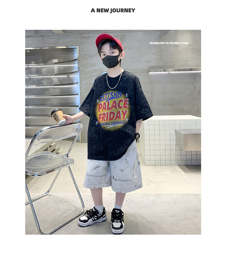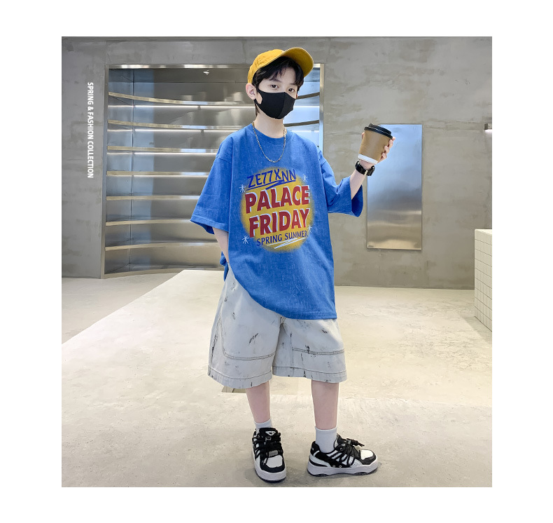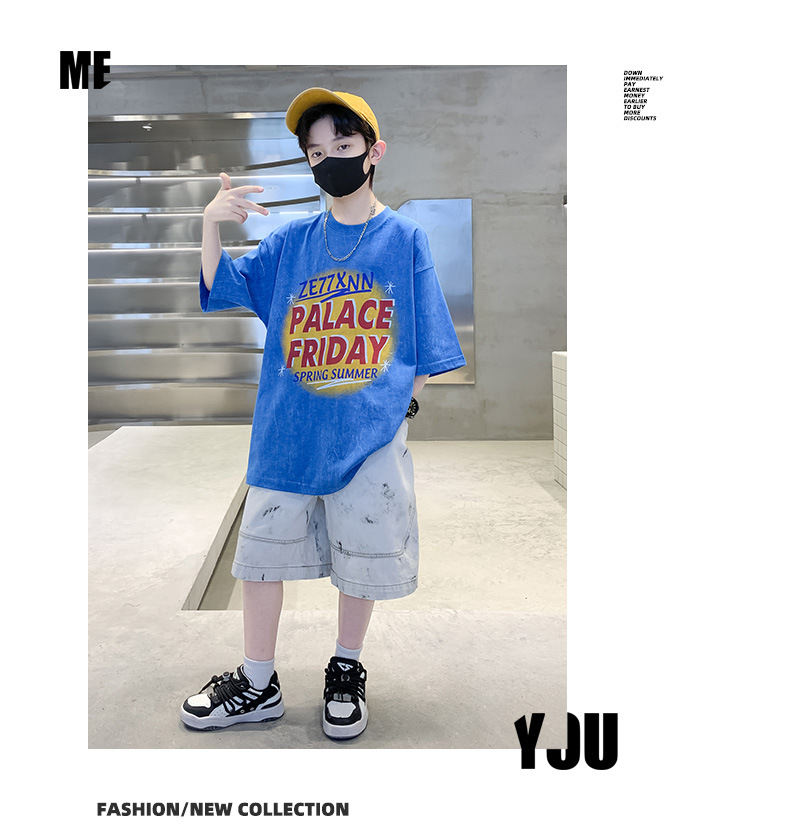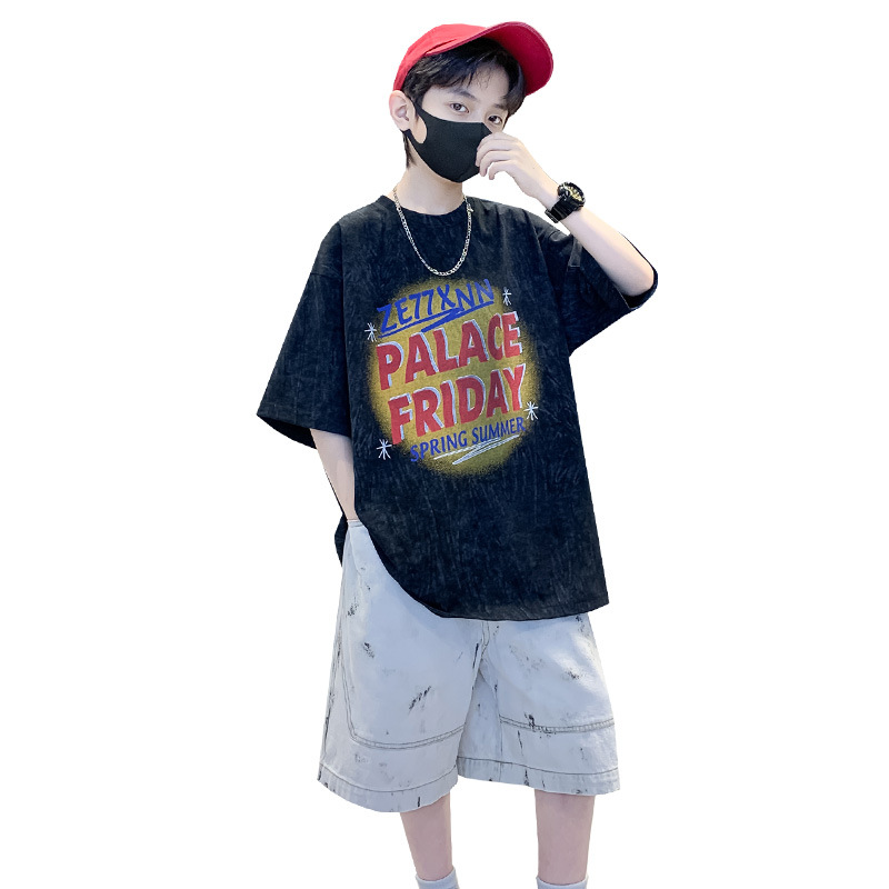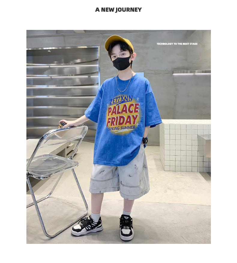 夏季中大男童短袖套装新款童装儿童男孩短裤两件套个性宽松潮痞帅