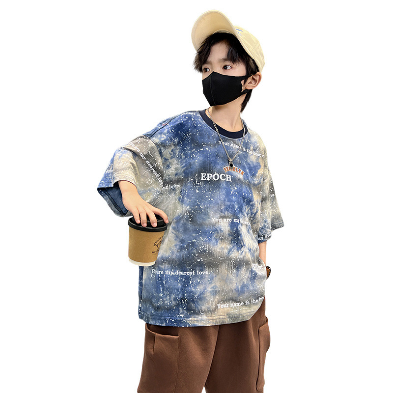 夏季中大男童短袖T恤新款童装儿童男孩扎染t个性潮酷痞帅上衣