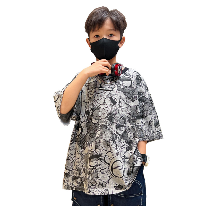 夏季中大男童短袖T恤新款童装儿童男孩卡通t个性潮酷痞帅上衣