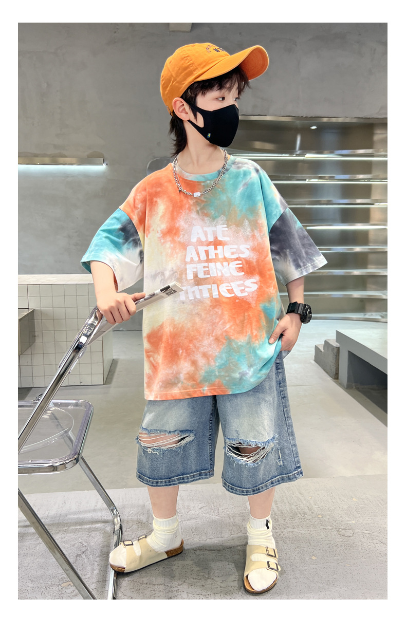 夏季中大男童短袖T恤新款童装儿童男孩扎染t个性潮酷痞帅上衣