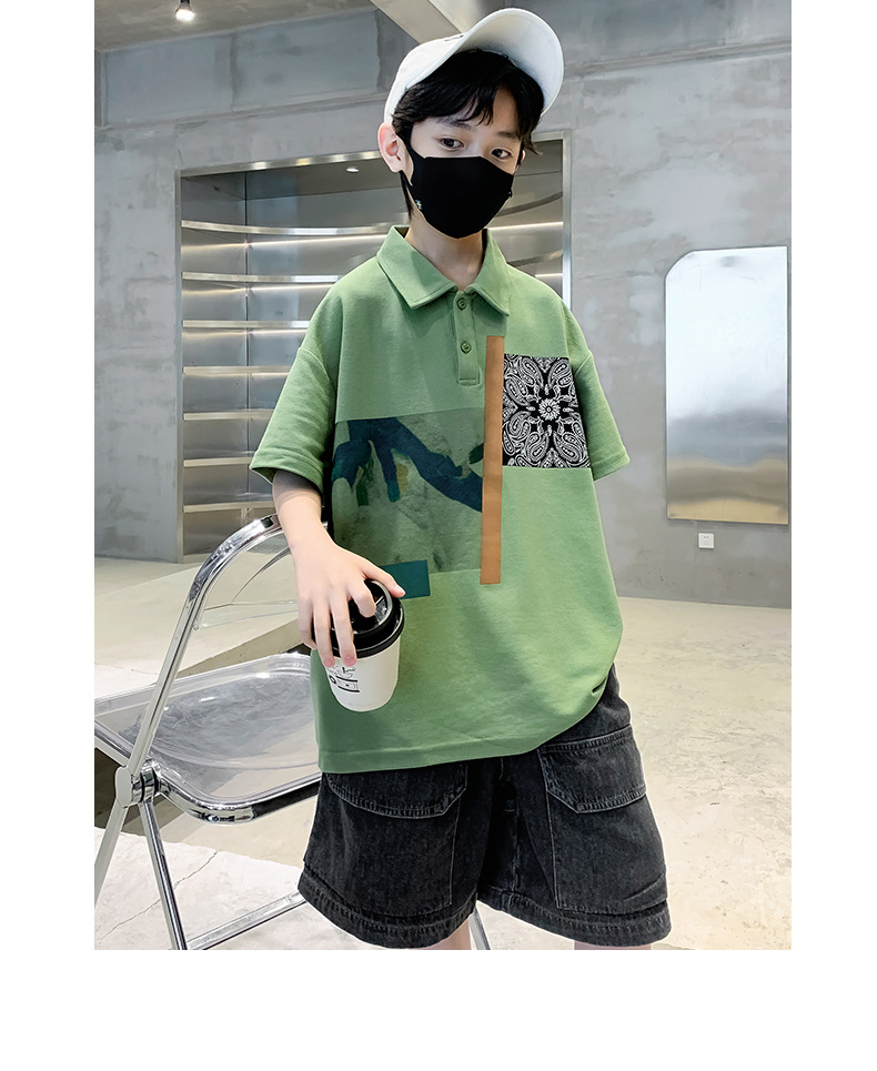 夏季新款男大童短袖Polo衫男孩个性t恤休闲童装儿童上衣潮酷帅气