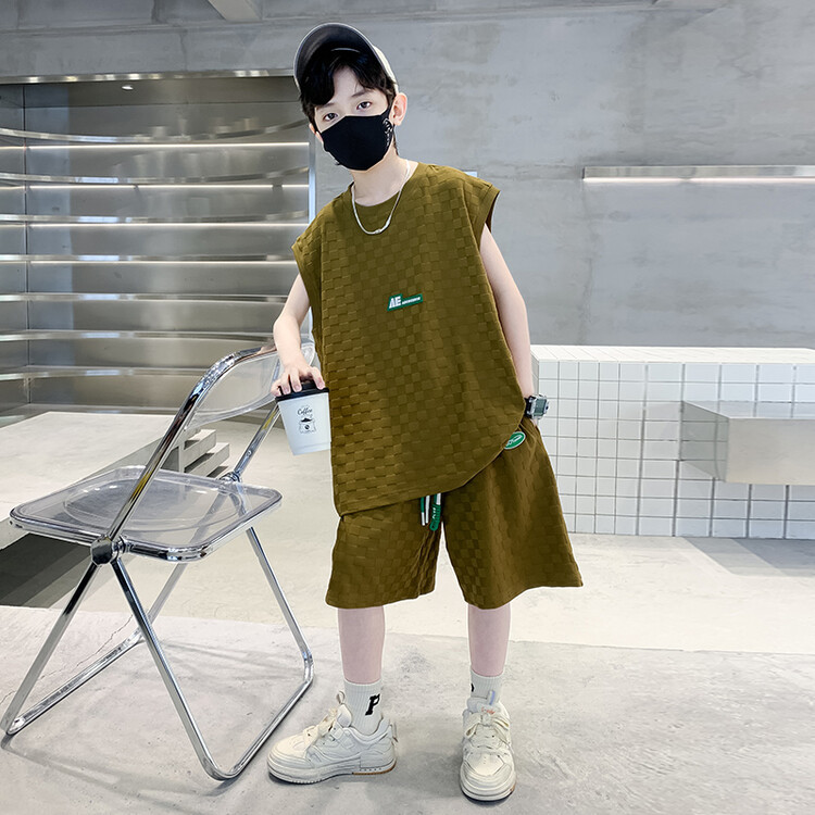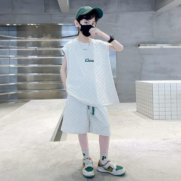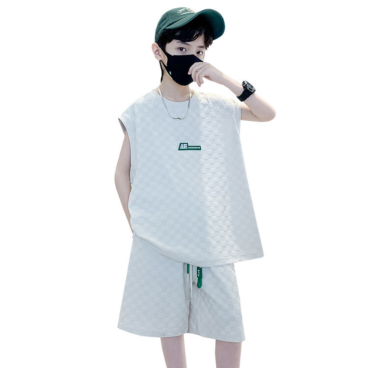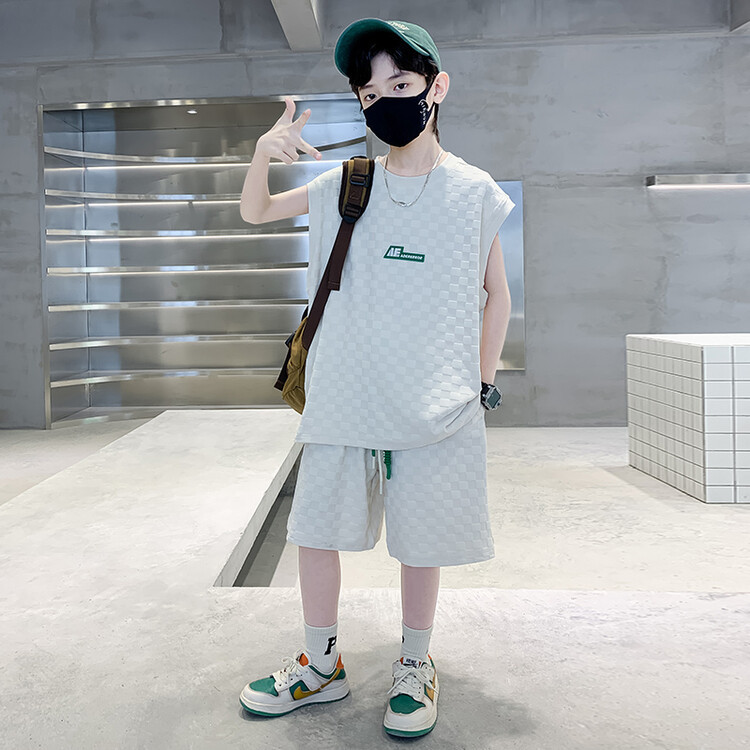 夏季新款大男童无袖短裤套装童装儿童男孩背心两件套字母休闲运动