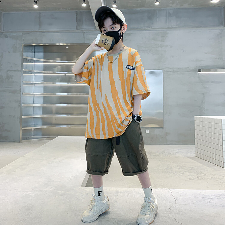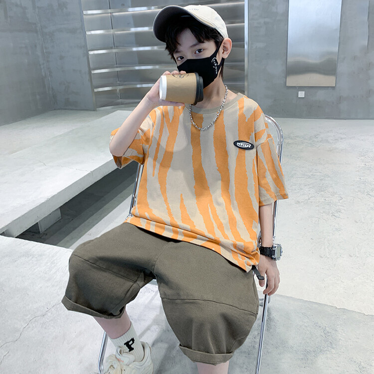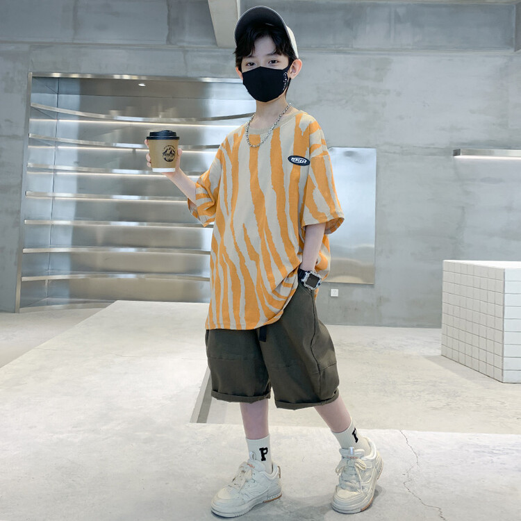 夏季新款中大男童短袖t恤个性男孩宽松体恤透气童装儿童T恤时尚潮