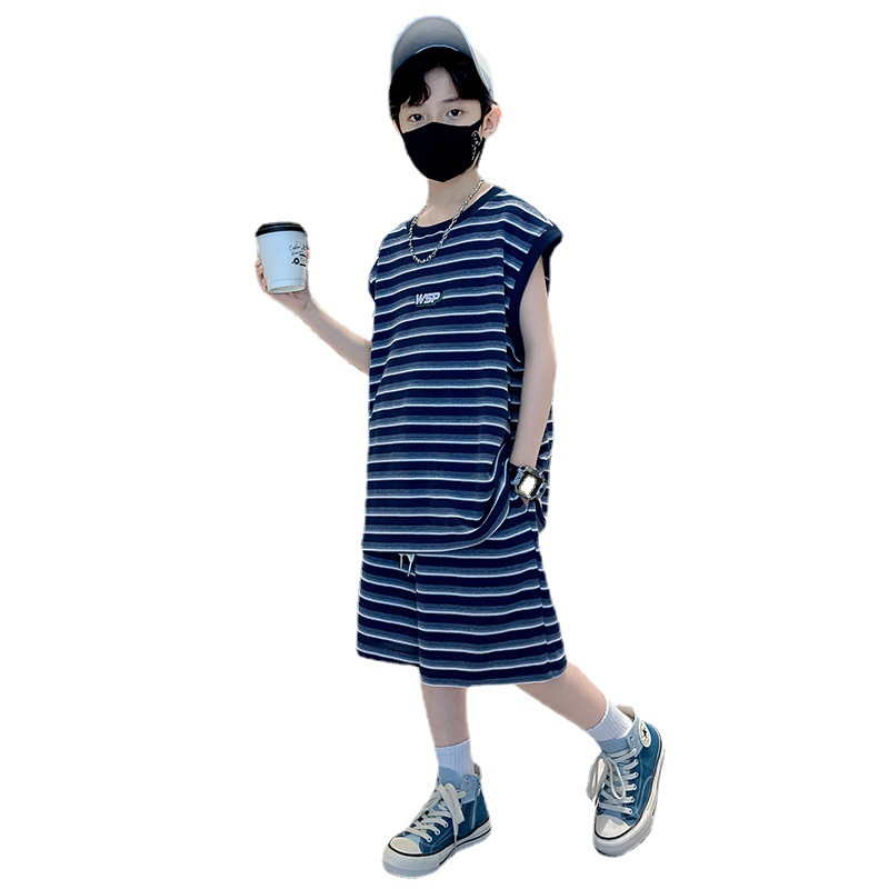 夏季新大男童背心短裤套装童装儿童男孩运动条纹无袖两件套童套装