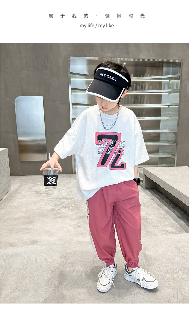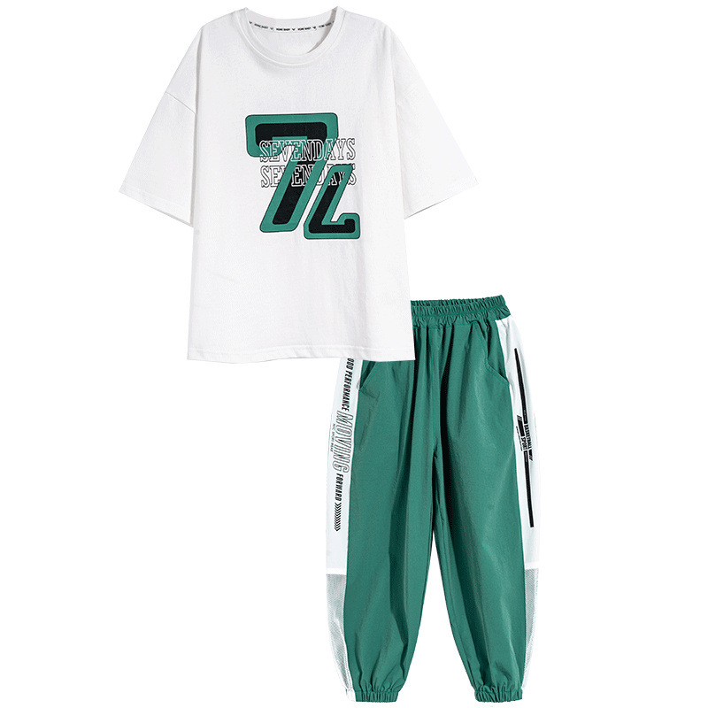 夏装新大男童短袖长裤套装童装儿童男孩t恤两件套潮酷个性童套装