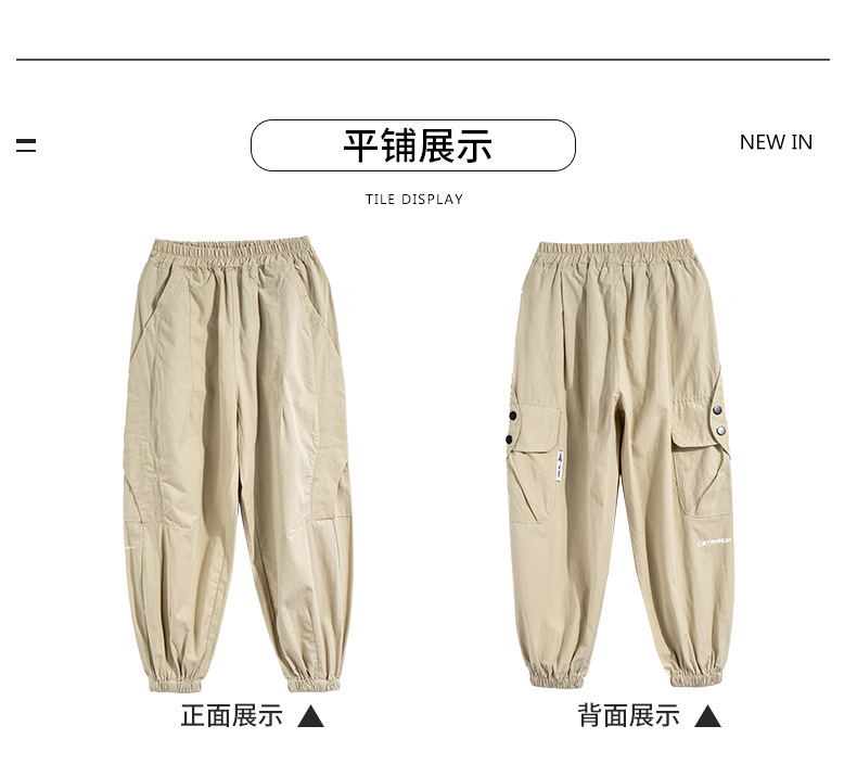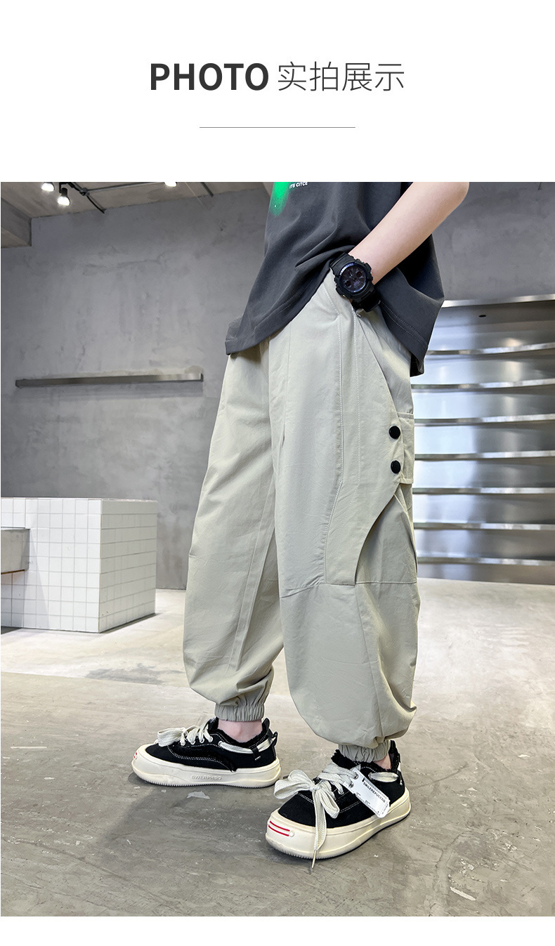夏装新大男童休闲裤童装男孩工装薄款长裤子纯色简约百搭童裤